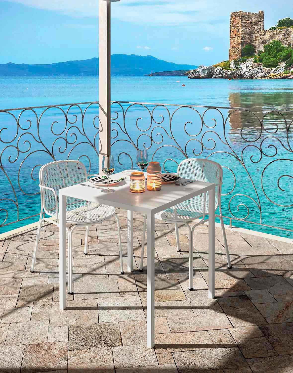 Moderner quadratischer Außentisch in Designblech Made in Italy.