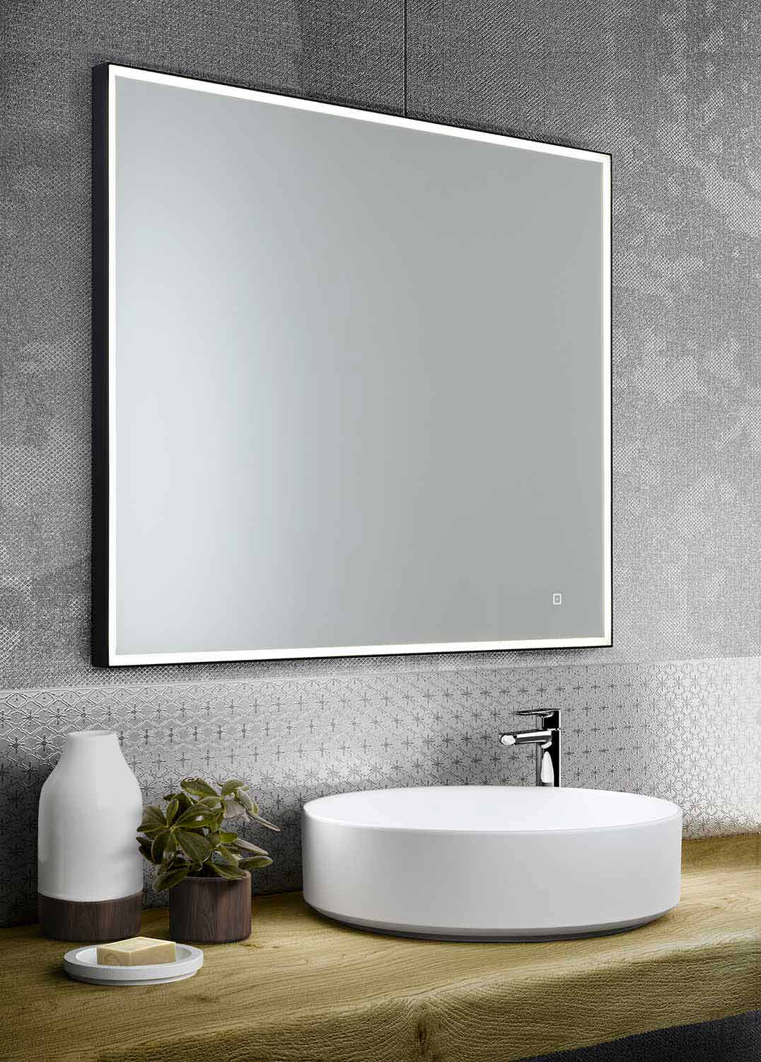 Quadratischer Wandspiegel 70x70 cm aus Aluminium mit LED-Licht Made in Italy.