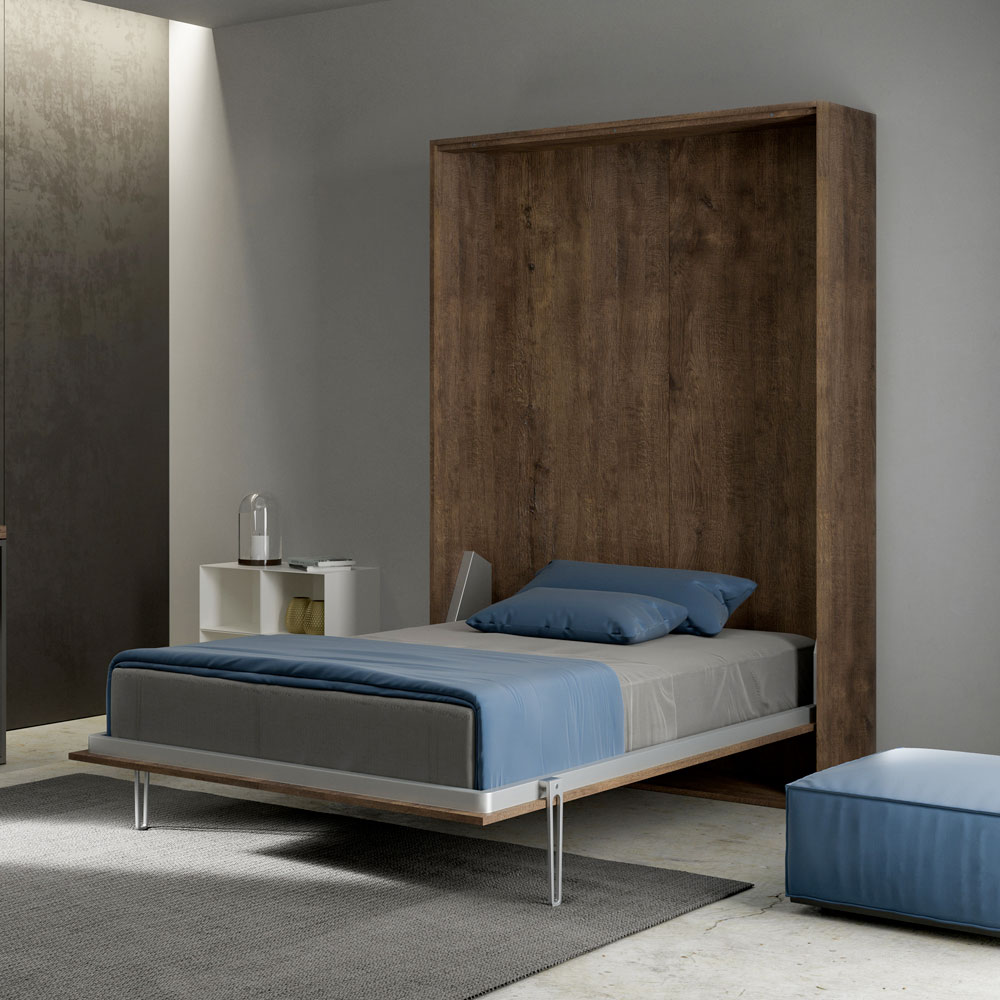 Der Bettrahmen besteht aus 18 mm dicken Melamin-Spanplatten und gewährleistet so Widerstandsfähigkeit und Langlebigkeit. Der Öffnungsmechanismus ist sanft und sicher und verwandelt die Wand mit einer einfachen Geste in ein bequemes Bett.