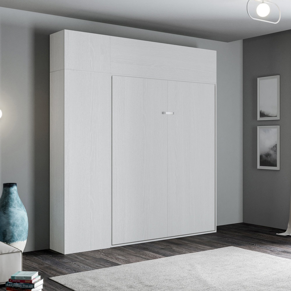 Der Bettrahmen besteht aus 18 mm dicken Melamin-Spanplatten und gewährleistet so Widerstandsfähigkeit und Langlebigkeit. Der Öffnungsmechanismus ist sanft und sicher und verwandelt die Wand mit einer einfachen Geste in ein bequemes Bett.
