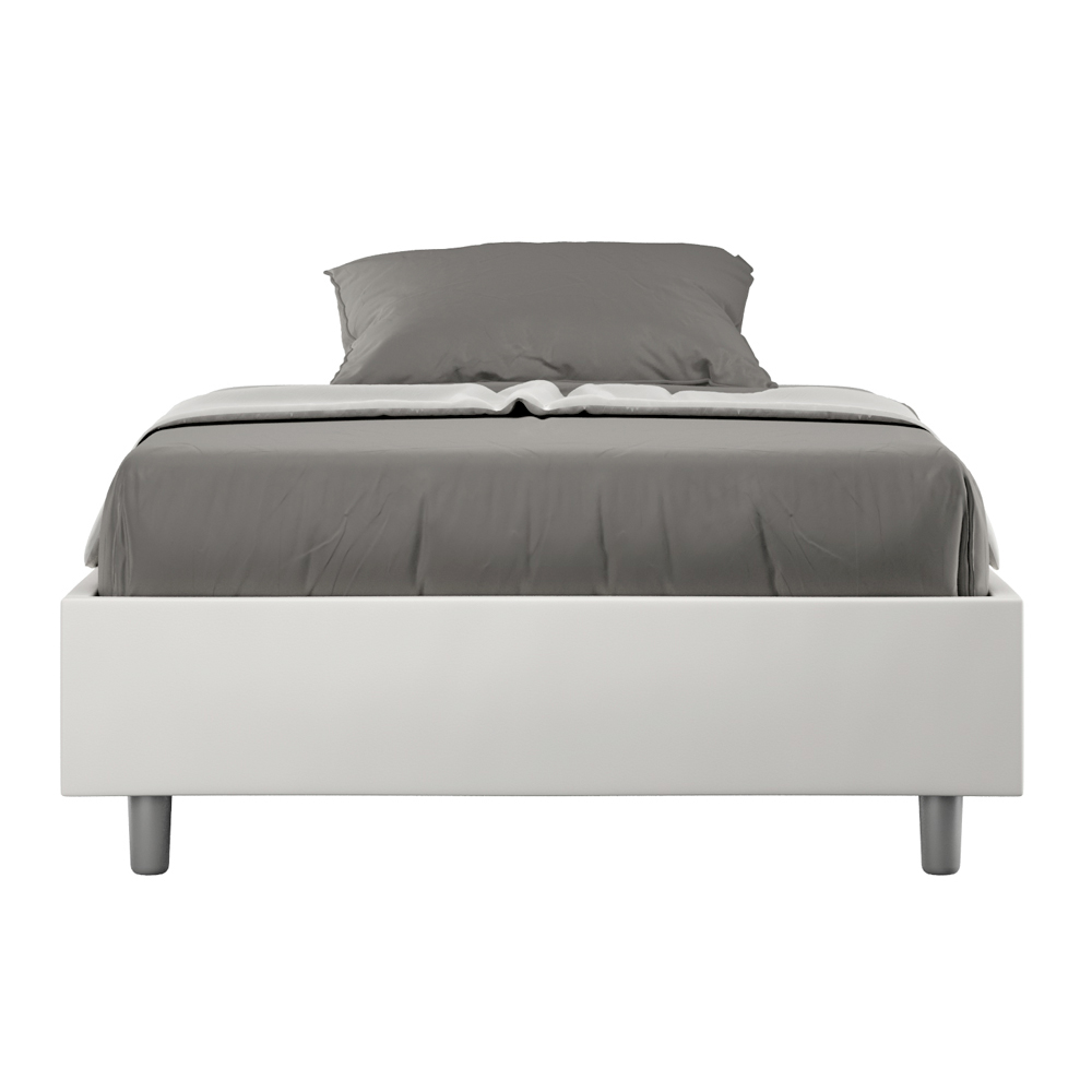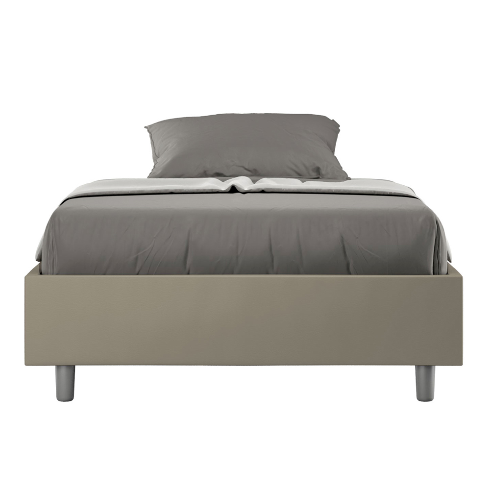 Gepolstertes Queensize-Bett (120 x 200 cm) aus Spanplatten , bezogen mit Kunstleder , vollständig in Italien hergestellt. Dieses Queensize-Bett besticht durch sein klares, minimalistisches Design . Seine zurückhaltende Ästhetik und Vielseitigkeit ermöglichen eine mühelose Integration in jedes Ambiente. Ein besonderes Merkmal ist das Fehlen eines traditionellen Kopfteils . Dadurch eignet es sich ideal für die Platzierung an ungewöhnlichen Orten, beispielsweise unter einem Fenster, im Dachgeschoss oder in der Nähe einer dekorativen Wand, ohne die Aussicht zu beeinträchtigen oder den gewünschten Effekt zu erzielen.