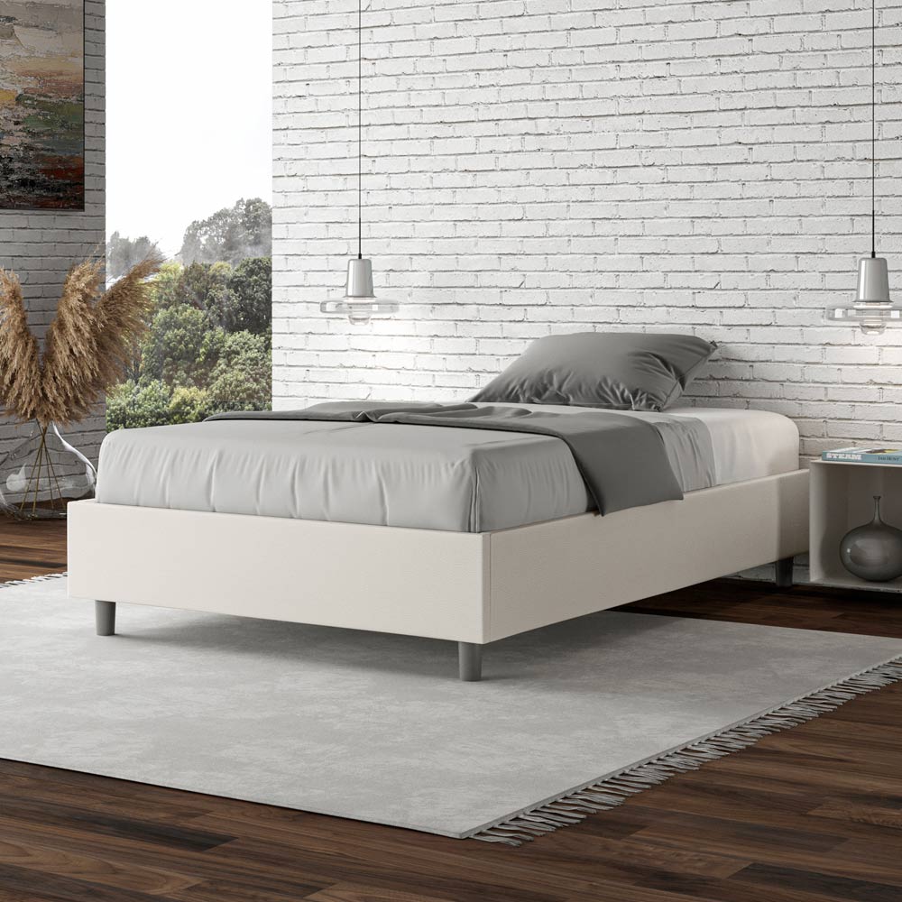 Französisches Bett 140x200 cm, gepolstert aus Melaminplatten und mit Kunstleder bezogen, vollständig Made in Italy. Dieses französische Bett besticht durch sein klares, minimalistisches Design . Seine zurückhaltende Ästhetik und Vielseitigkeit ermöglichen eine mühelose Integration in jedes Ambiente. Ein besonderes Merkmal ist das Fehlen eines traditionellen Kopfteils . Dadurch eignet es sich ideal für die Platzierung an ungewöhnlichen Orten, beispielsweise unter einem Fenster, im Dachgeschoss oder in der Nähe einer dekorativen Wand, ohne die Aussicht zu beeinträchtigen oder den gewünschten Effekt zu erzielen.