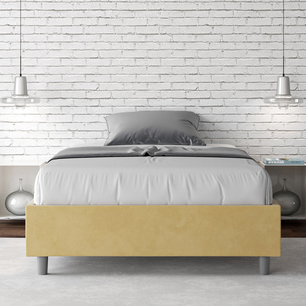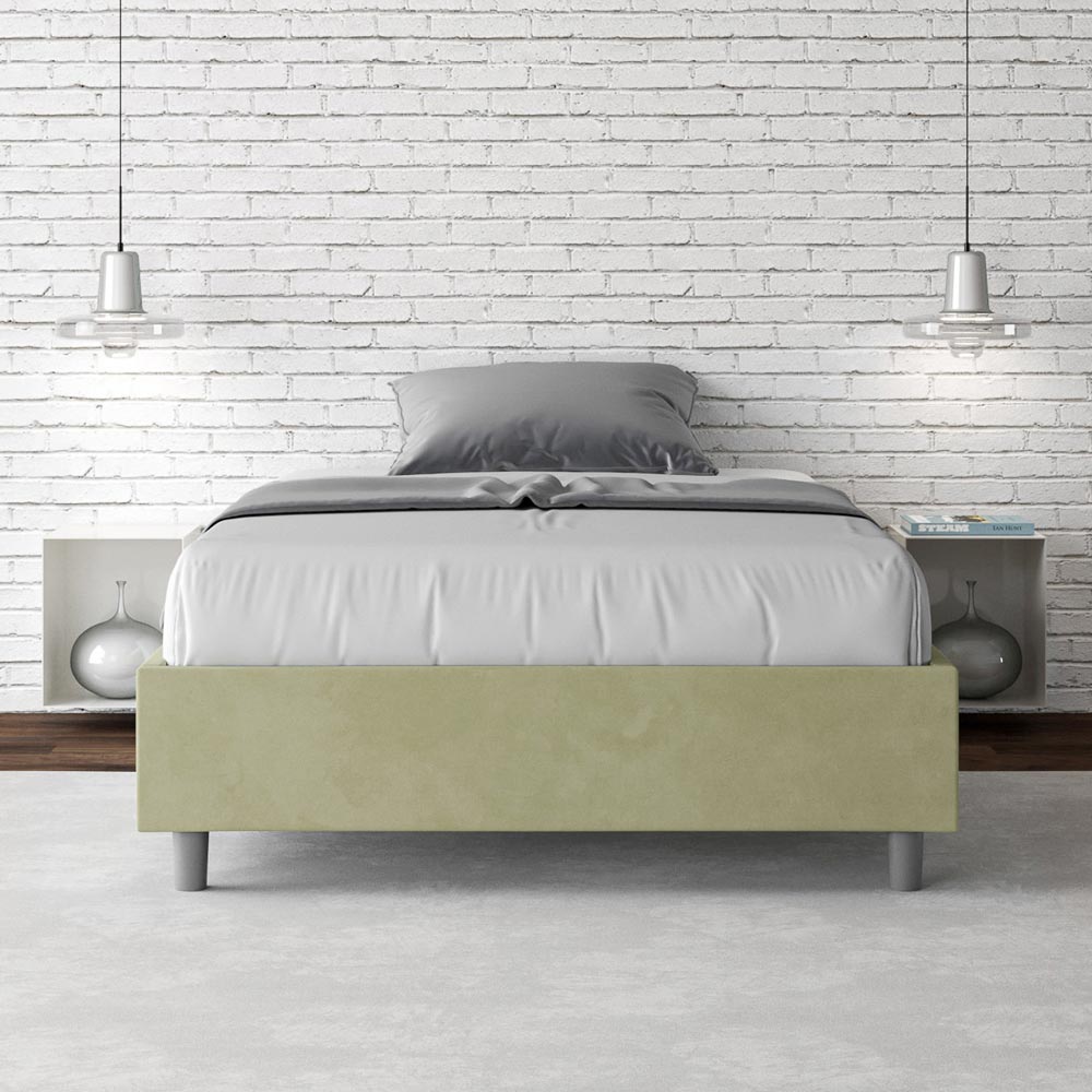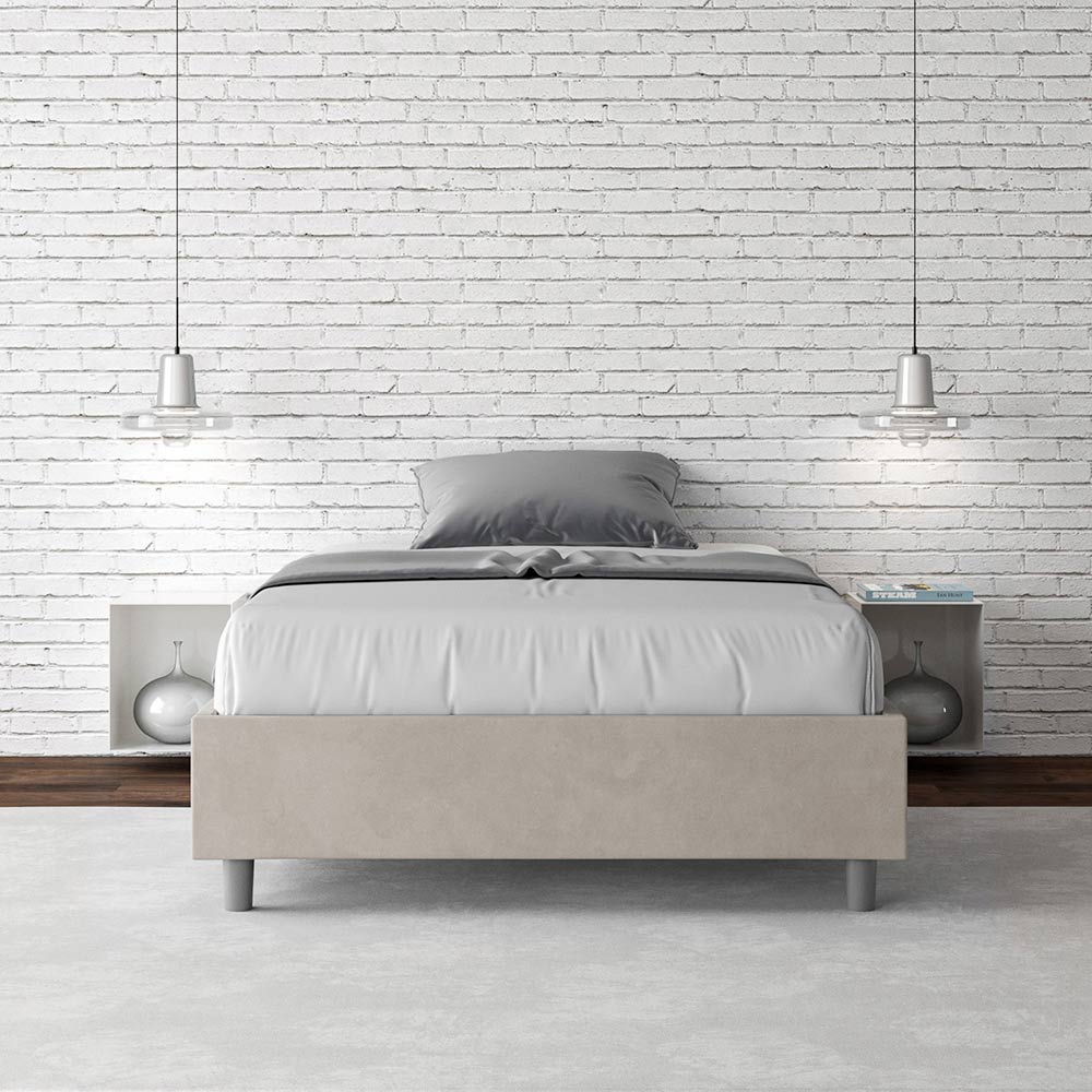 Französisches Bett 140x200 cm, gepolstert aus Melaminplatten und mit Mikrofaser bezogen, vollständig Made in Italy. Dieses französische Bett besticht durch sein klares, minimalistisches Design . Seine zurückhaltende Ästhetik und Vielseitigkeit ermöglichen eine mühelose Integration in jedes Ambiente. Ein besonderes Merkmal ist das Fehlen eines traditionellen Kopfteils . Dadurch eignet es sich ideal für die Platzierung an ungewöhnlichen Orten, beispielsweise unter einem Fenster, im Dachgeschoss oder in der Nähe einer dekorativen Wand, ohne die Aussicht zu beeinträchtigen oder den gewünschten Effekt zu erzielen.