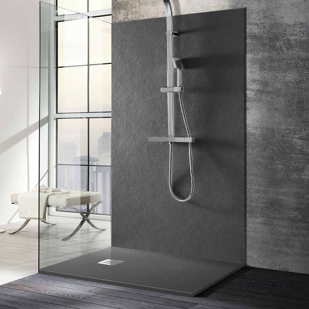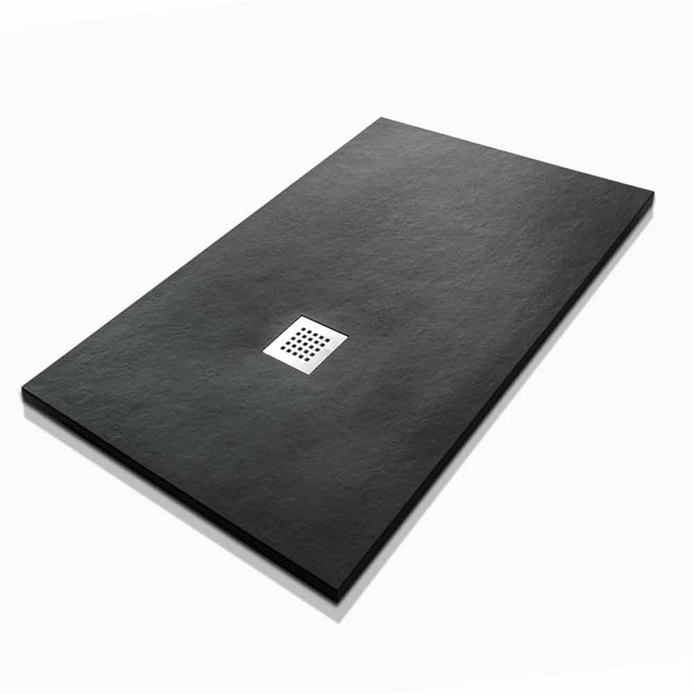Moderne Duschwanne 140x80 aus Harz mit Stein- und Stahleffekt.