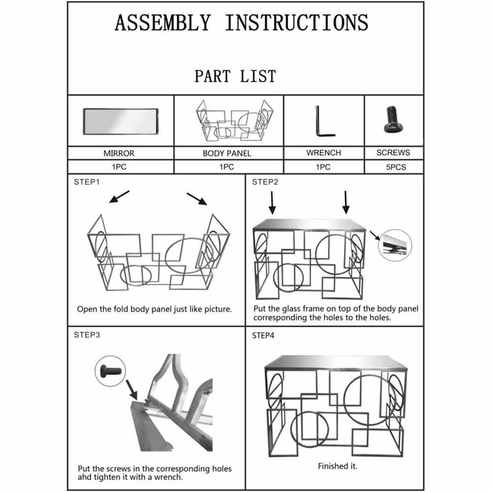 Moderner rechteckiger Konsolentisch 120X41X81 cm aus Eisen mit Spiegelplatte.