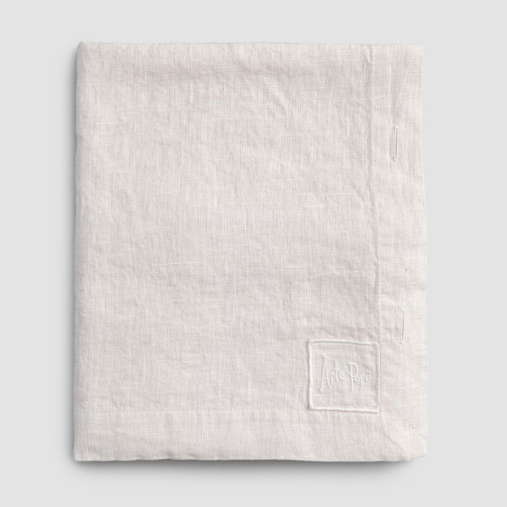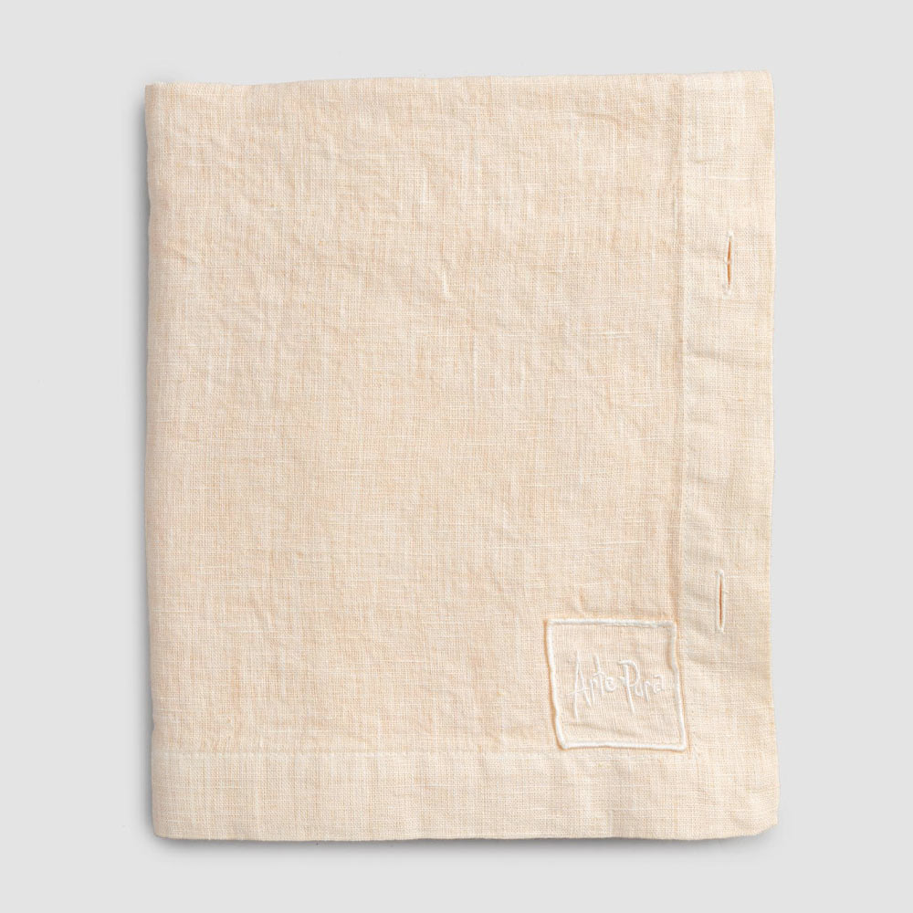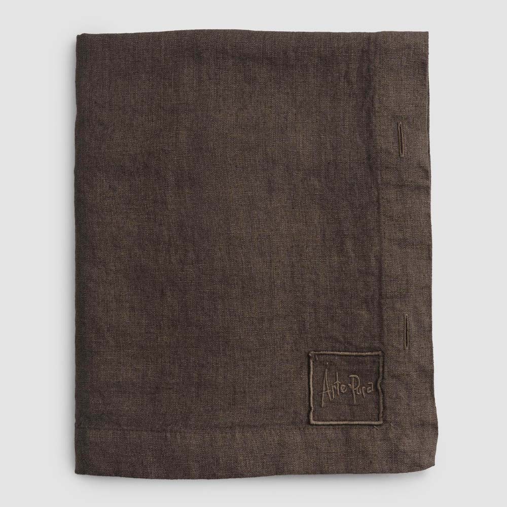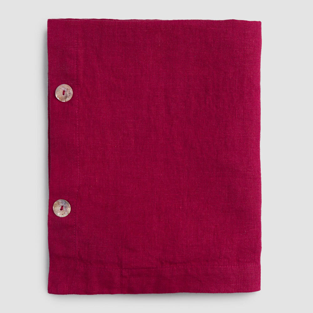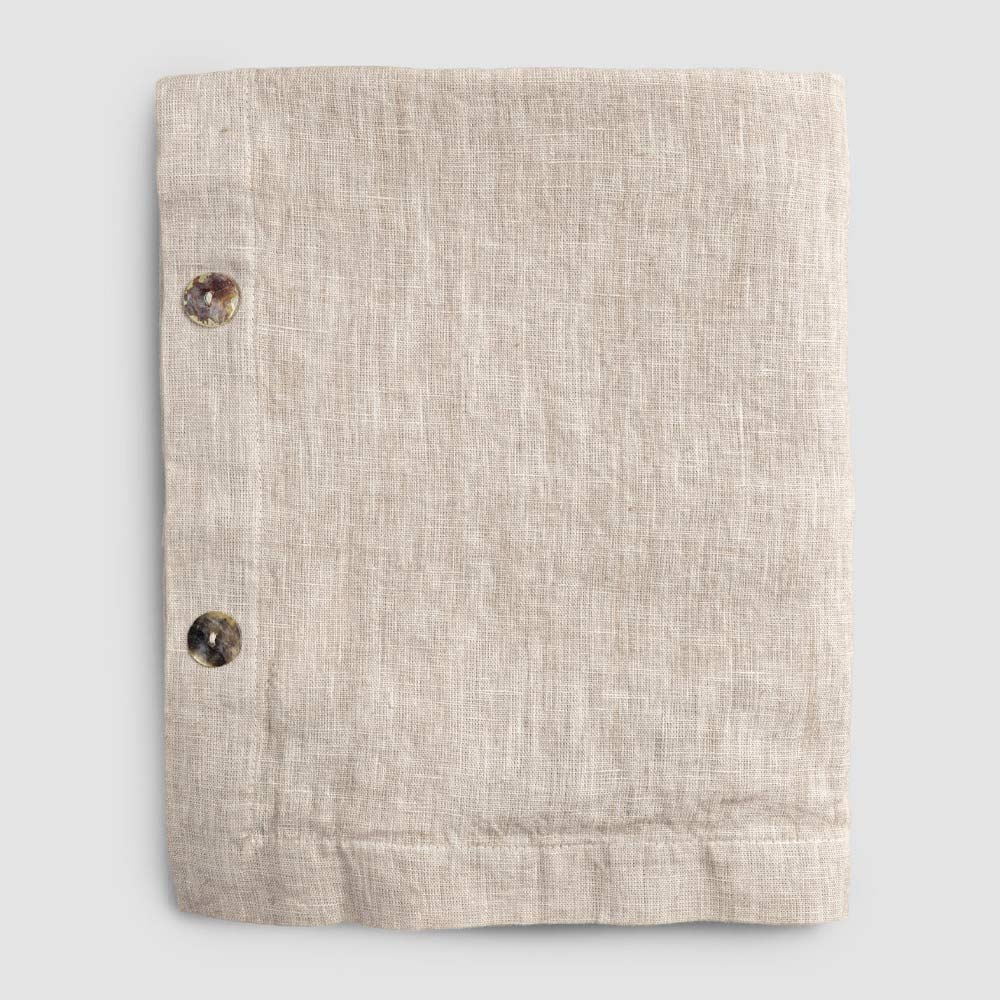 Modulare Tischdecke aus farbigem Leinen mit Perlmuttknöpfen, handgefertigte Qualität made in Italy.