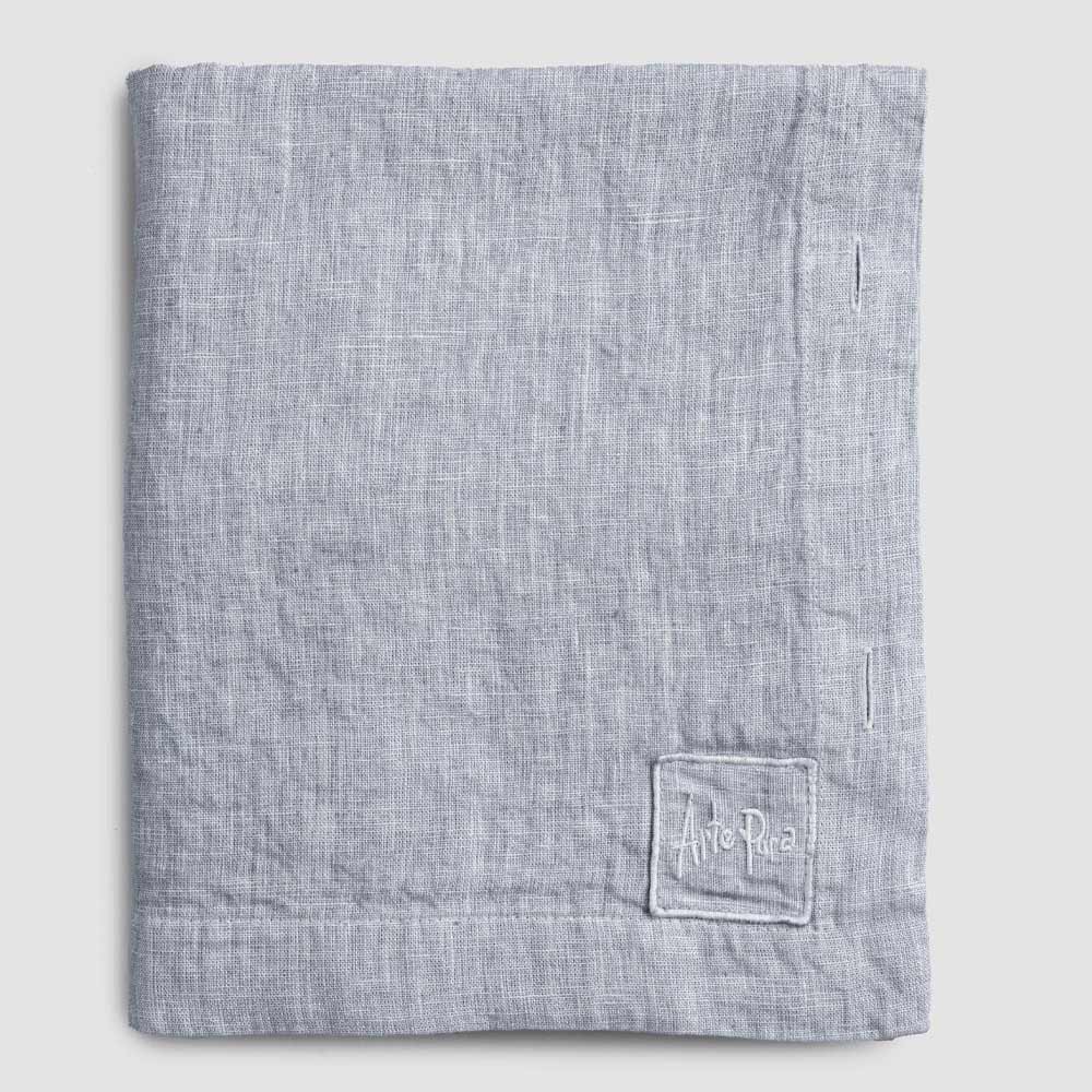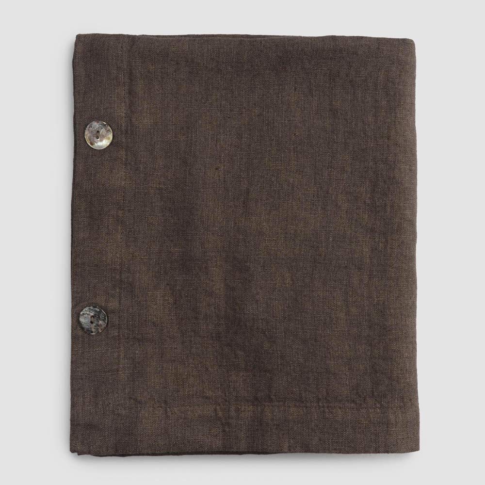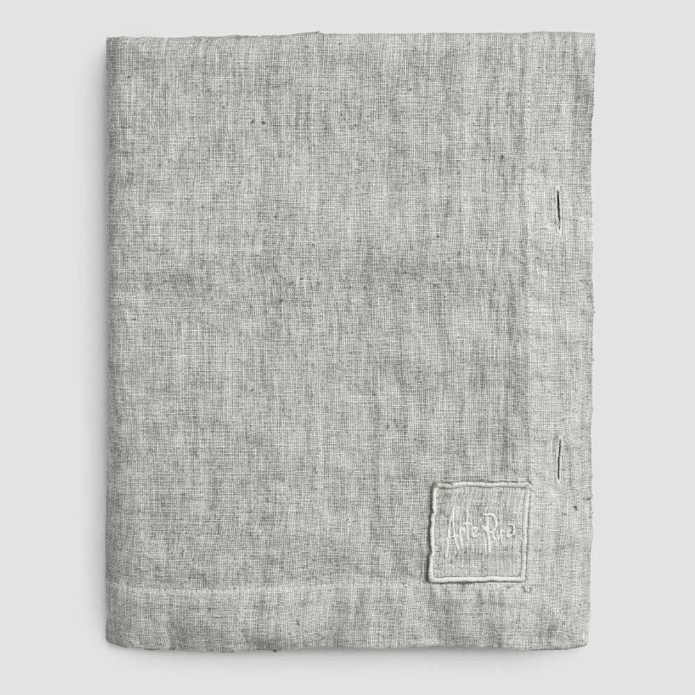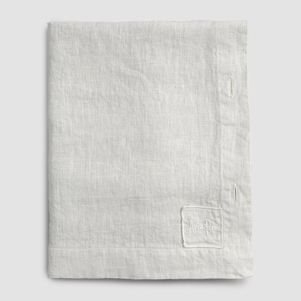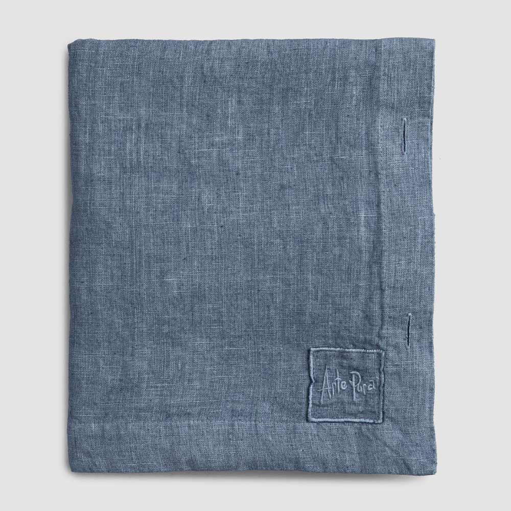 Modulare Tischdecke aus farbigem Leinen mit Perlmuttknöpfen, handgefertigte Qualität made in Italy.