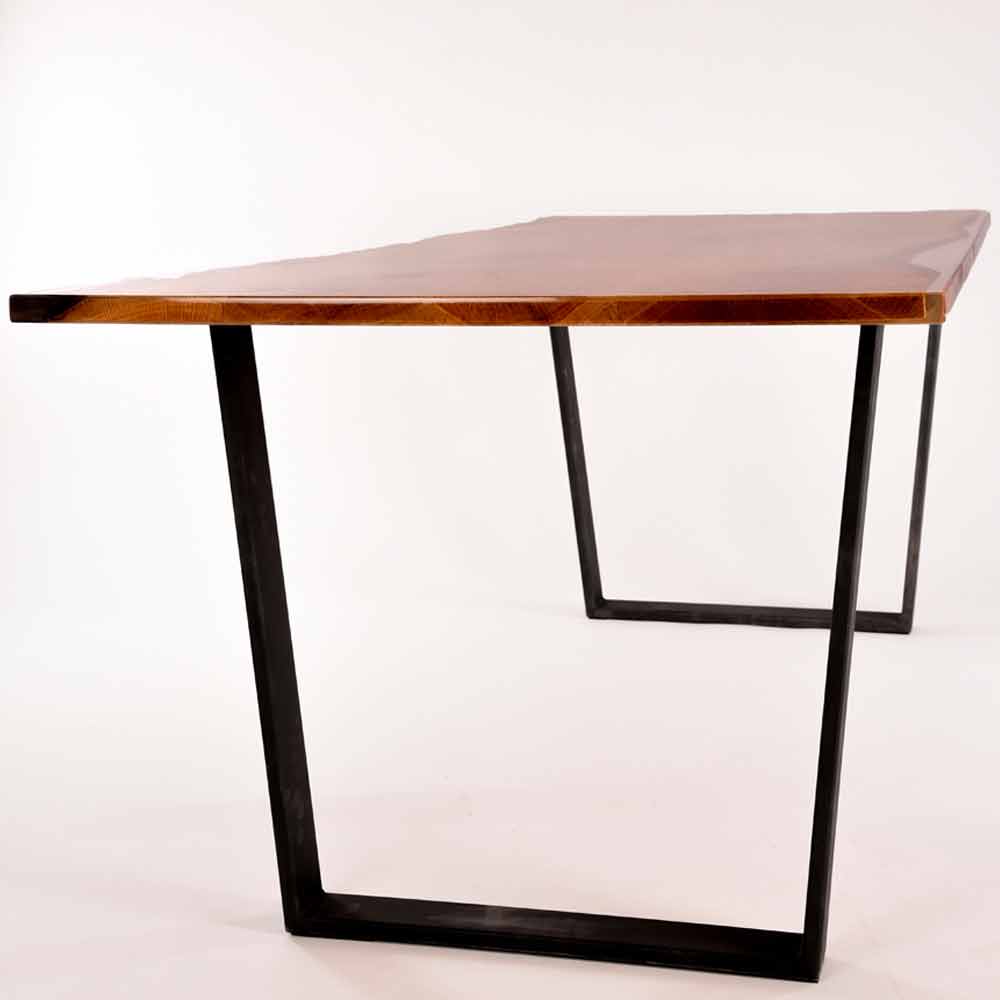 Die Einfachheit des Rino Tischdesigns kann natürlich jedes Interieur ergänzen. Es besteht aus einer einzigen Holzplatte, die Eiche, Zeder, Kirsche, Briccola in transparentem Harz eingetaucht werden kann.