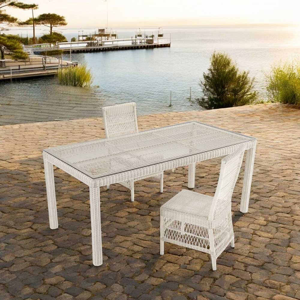 Garten Zusammensetzung bestehend aus: rechteckigen Tisch mit Aluminium Basis und Polyrattan-Geflecht Marke REHAU und Glasplatte, 4 Stühle und 2 Sessel mit Armlehnen mit Aluminiumrahmen und Polyrattan-Geflecht Marke REHAU. Diese Zusammensetzung zeichnet sich durch seine starke klassisches Design, ein Stil aus der Vergangenheit in der Mode in den 60er und 70er Jahren in einem Outdoor-Schlüssel wieder aufgegriffen. Der Geflechtstil ist raffiniert und zart und zusammen mit der sehr hohen Qualität der Materialien und den entschiedenen Formen machen diese Garnitur perfekt für die Einrichtung von Innen- und Außenbereichen, sowohl im privaten als auch im Objektbereich wie Terrassen, Veranden, Gärten, aber sie finden auch einen perfekten Platz am Pool.