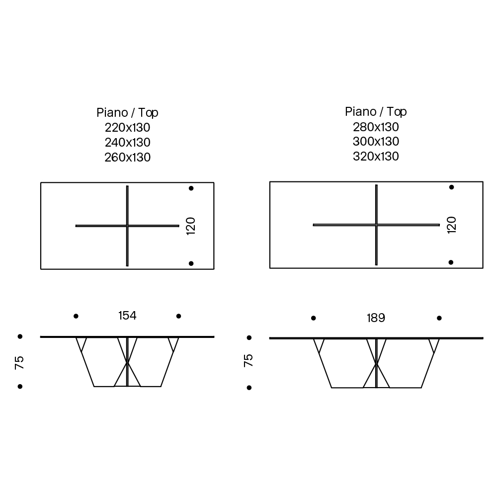 - L 320 x T 130 x H 75 cm.
