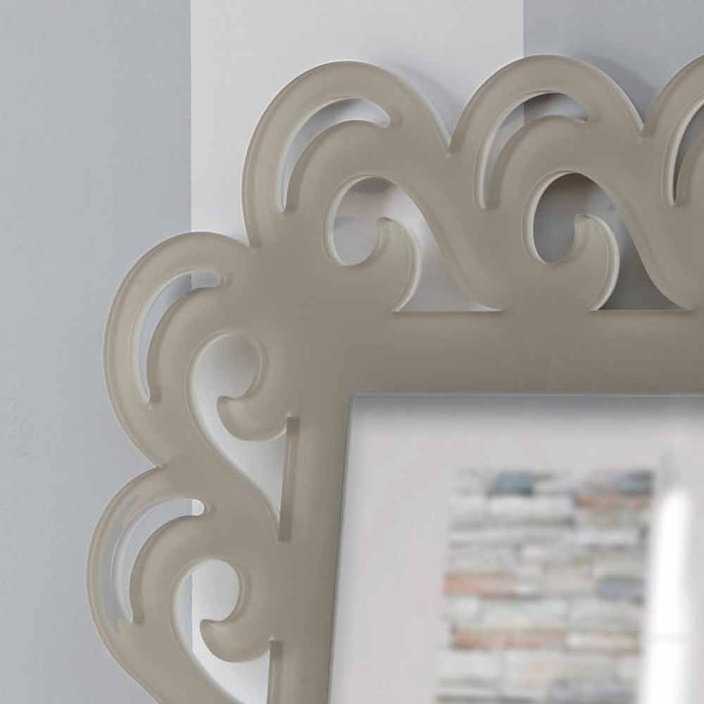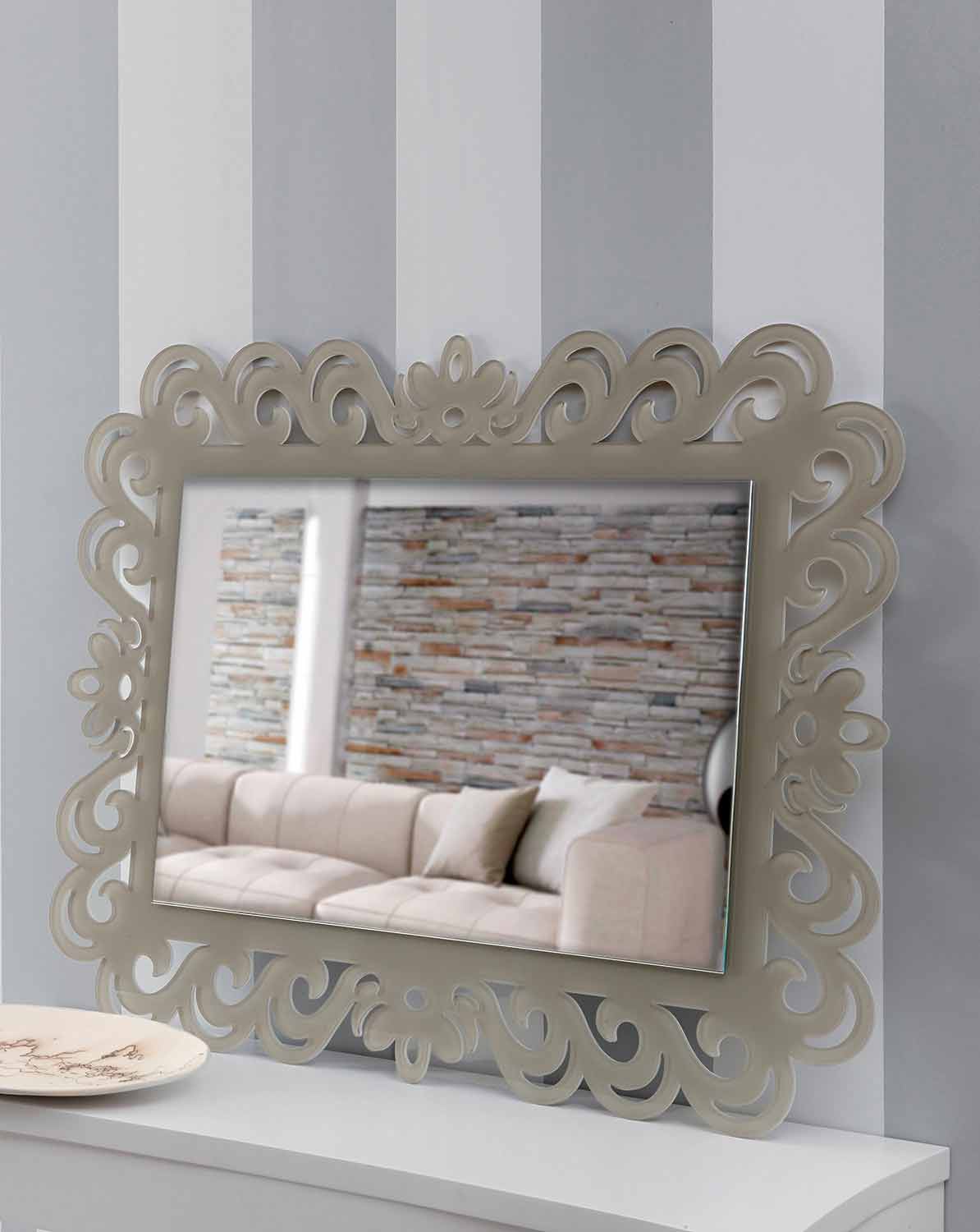 Rechteckiger Wandspiegel mit Blumenrahmen aus taubengrauem Plexiglas in modernem Design, hergestellt in Italien.