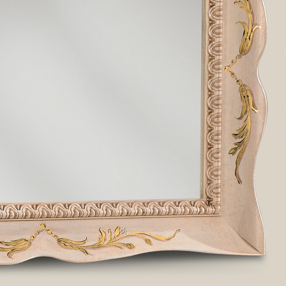 Rechteckiger Spiegel im klassischen Stil mit verziertem Rahmen aus weißem Holz , perfekt, um Ihren Wohnbereich mit Eleganz und Persönlichkeit zu dekorieren.