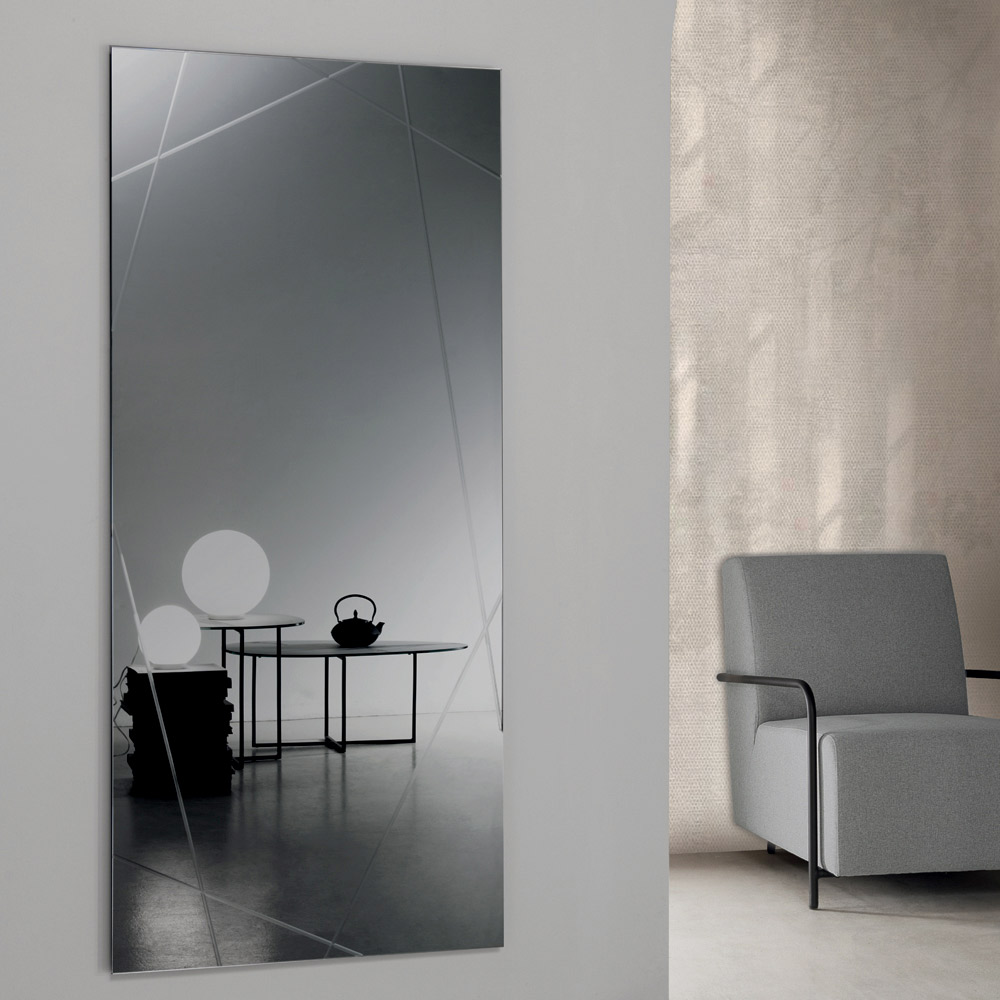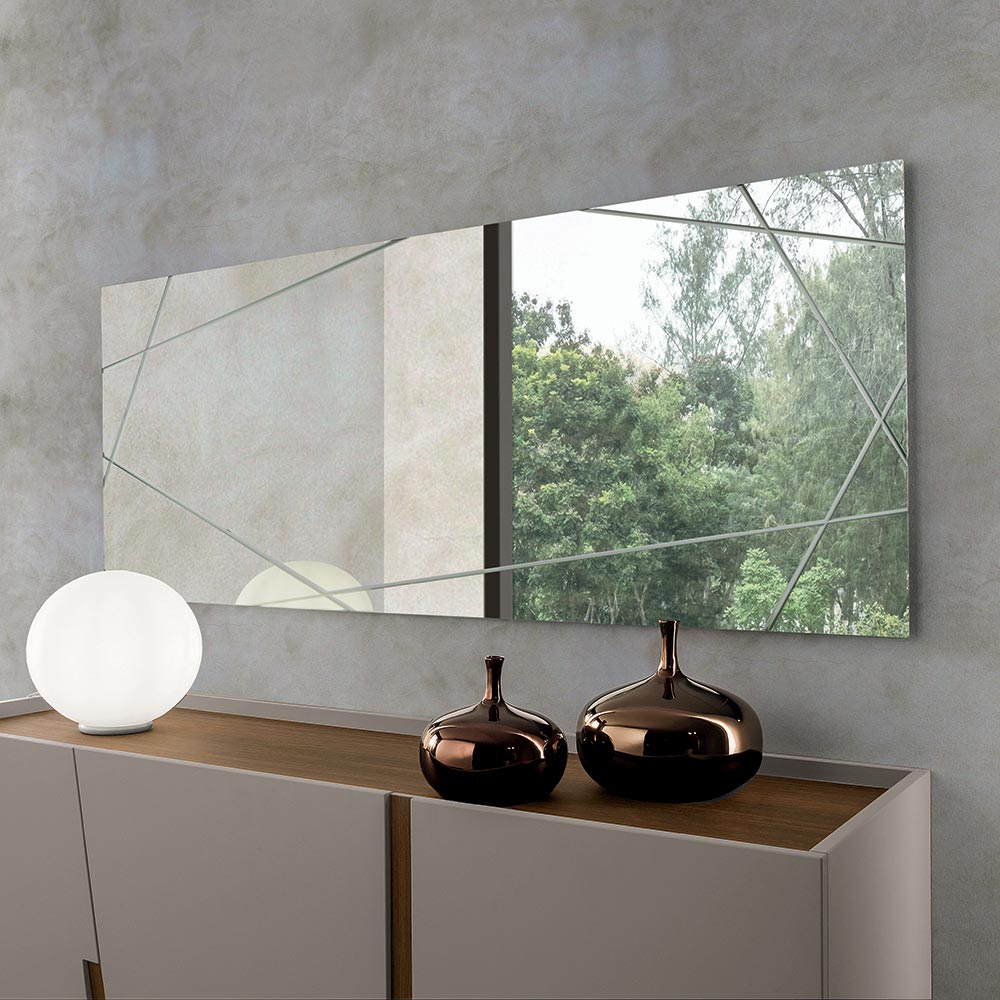 Ein eleganter , in Italien gefertigter Designer-Wandspiegel , ideal zur Verschönerung von Räumen wie Eingangsbereich , Wohnzimmer oder Schlafzimmer . Sein essentielles, modernes Design besticht durch klare Linien und raffinierte grafische Details, die die Spiegelfläche bereichern.