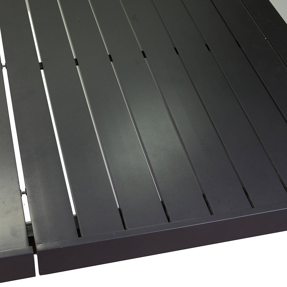 Die robuste Aluminiumkonstruktion sorgt für Langlebigkeit und Witterungsbeständigkeit, so dass er sein tadelloses Aussehen auch nach vielen Jahren beibehält. Das Finish verleiht ihm einen Hauch von Eleganz und Modernität und macht ihn zu einem vielseitigen und auffälligen Möbelstück.