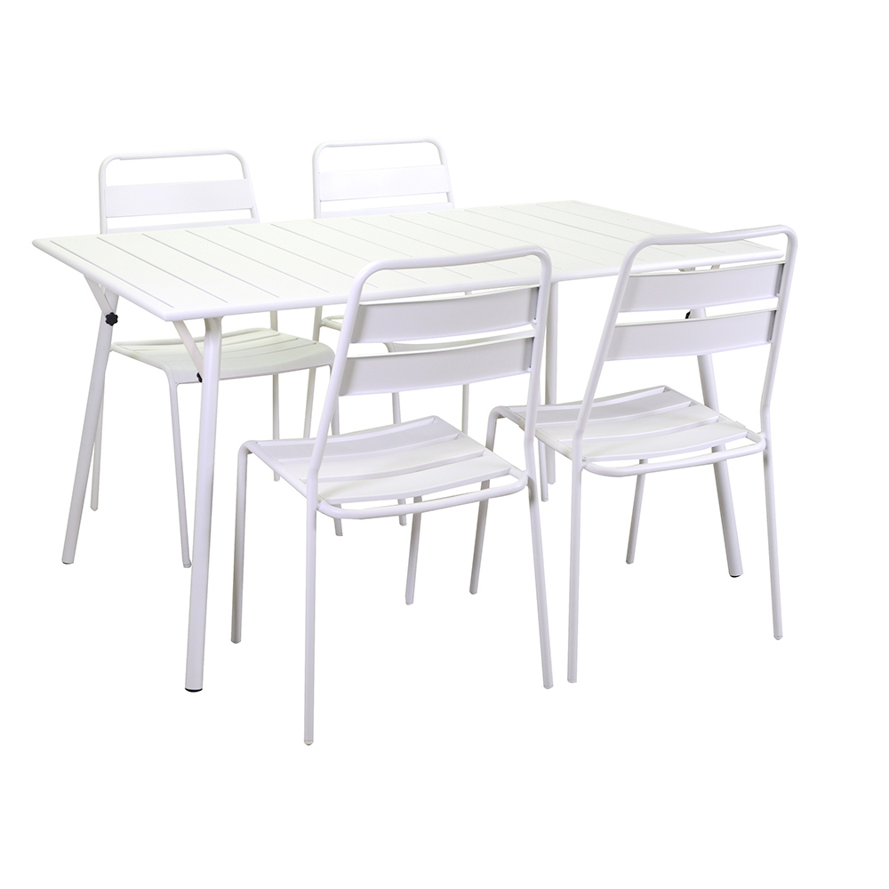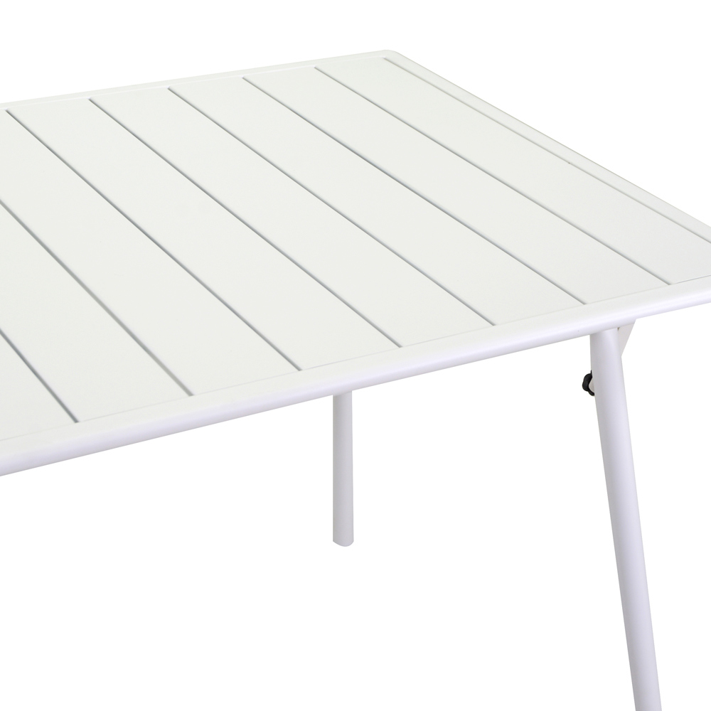 Hergestellt mit einem robusten Metallrahmen, gewährleistet dieser Tisch Langlebigkeit und Stabilität, was ihn ideal für den täglichen Gebrauch macht. Die weiße Oberfläche bietet ein frisches, klares Aussehen, das leicht zu jedem Einrichtungsschema passt, von modern bis traditionell.