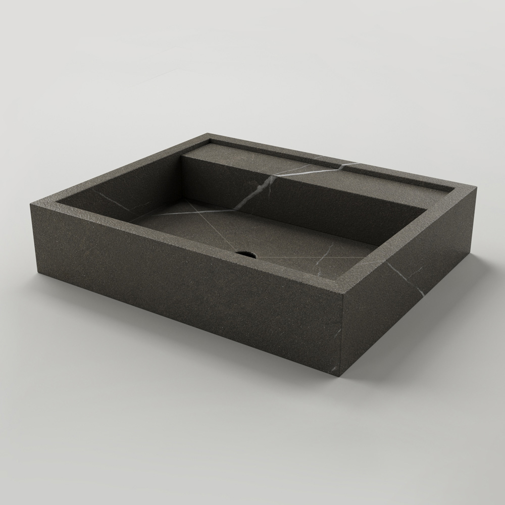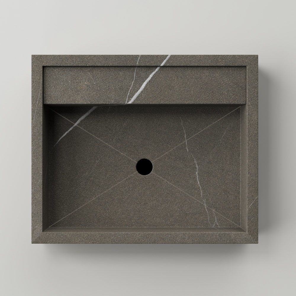 Komplett in Italien hergestelltes Aufsatzwaschbecken , das aus der sorgfältigen Verarbeitung von Feinsteinzeugplatten in Steinoptik der neuesten Generation stammt, die durch hochwertige Produktionsprozesse behandelt wurden. Eine einfache und essentielle Ästhetik, bereichert durch die Verwendung eleganter und stilvoller Oberflächen, die die feine und geschmackvolle Seele des Waschbeckens unterstreichen, um ein exklusives Ergebnis mit einer starken zeitgenössischen Persönlichkeit zum Leben zu erwecken.