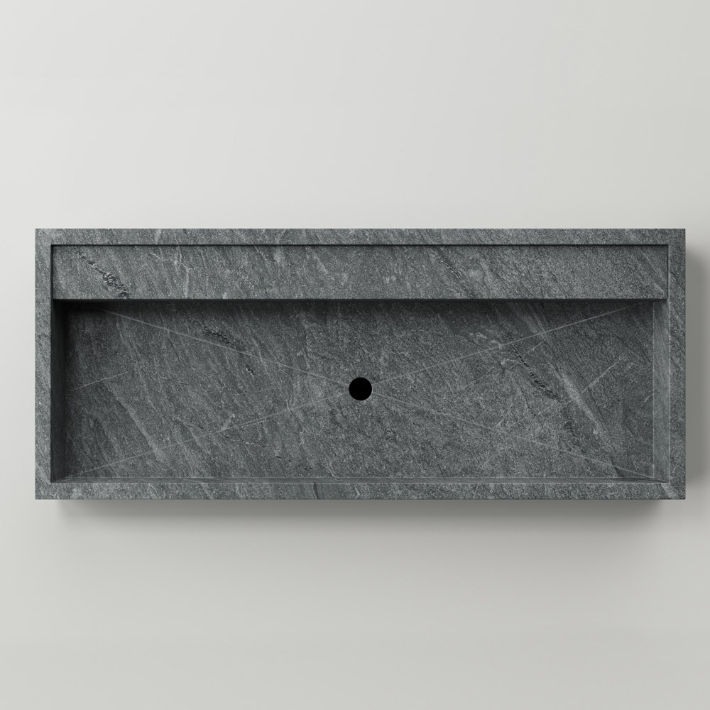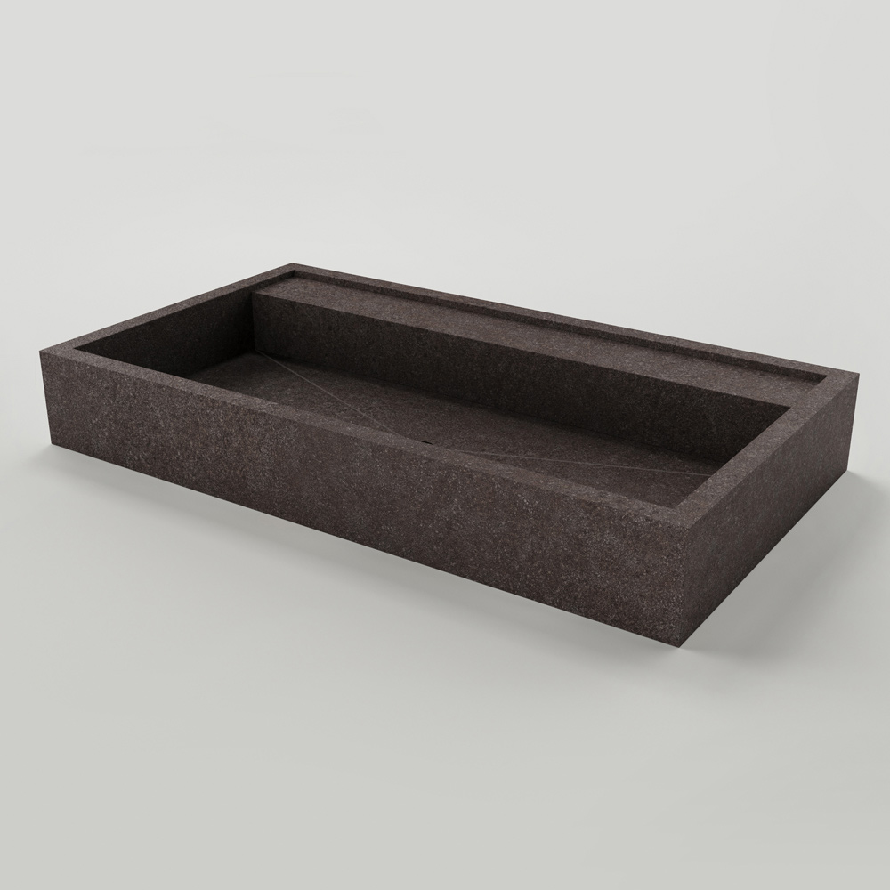 Rechteckiges Aufsatzwaschbecken aus Feinsteinzeug mit Steinoptik Made in Italy.