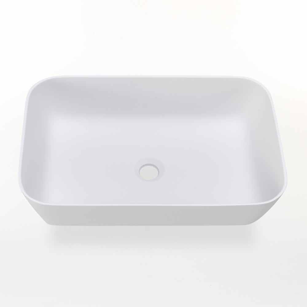Rechteckiges Aufsatzwaschbecken im modernen Stil, handgefertigt in Italien aus undurchsichtigem Harz.