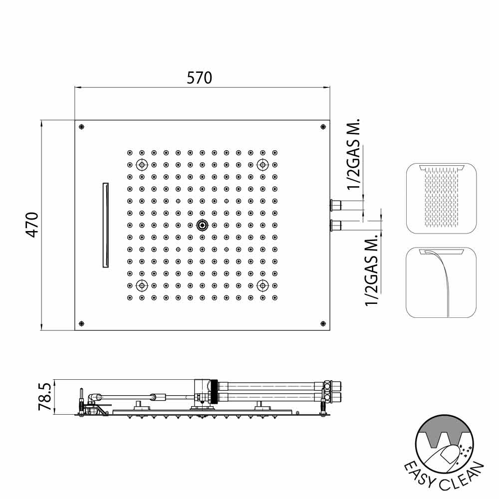 Die Kollektion Dream von Bossini bietet zwei verschiedene Strahlfunktionen an: Wide-Rain (Regen) und Wasserfall.