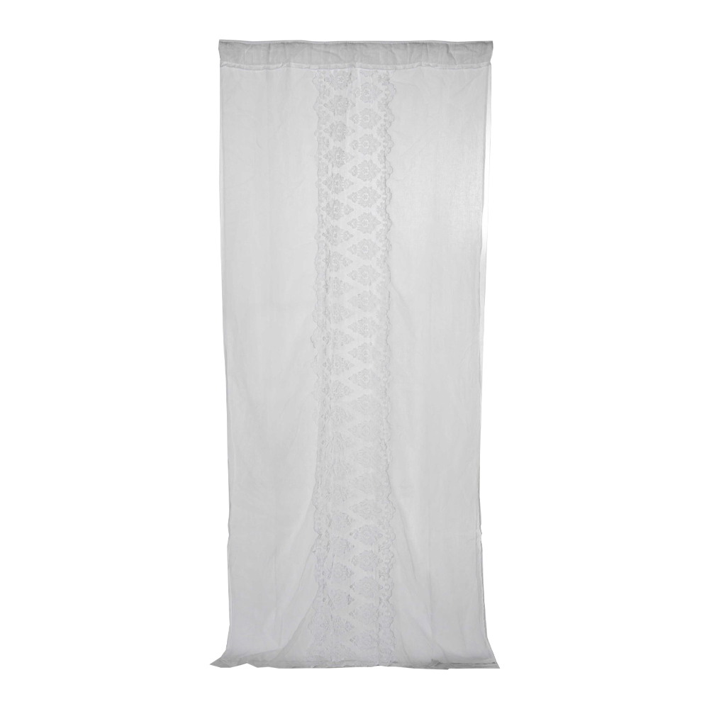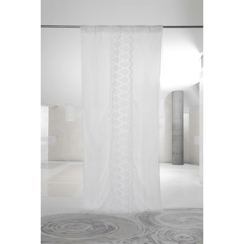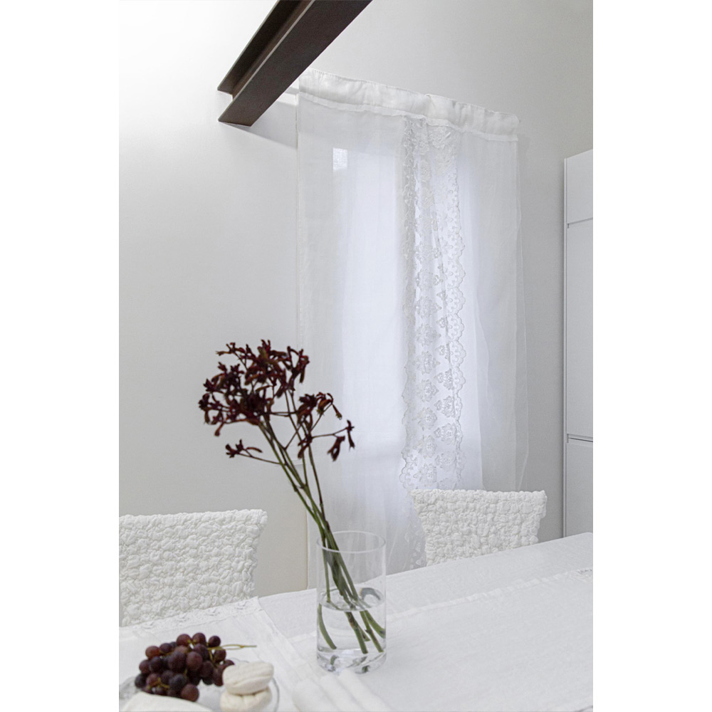Der Wert der Tradition verbindet den modernen Lebensstil mit diesem natürlichen weißen Licht Leinenvorhang mit Organza und vertikalen Gothic Stickerei im zentralen Teil und Prädisposition für einen Stock im oberen Teil mit Organza Dekoration.