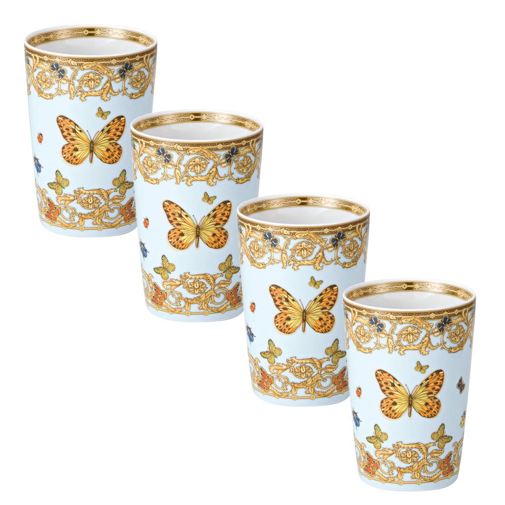 Dieses Glas Le Jardin de Versace aus edlem Porzellan ist eine Ode an Schönheit und Eleganz. Mit einem barocken Blumenmotiv verziert und mit bunten Schmetterlingen geschmückt, verkörpert es perfekt den unverwechselbaren Stil des Hauses Versace. Der zarte blaue Hintergrundton, In Kombination mit den goldenen Details entsteht eine Kombination aus Luxus und Frische, ideal, um jeden Tisch mit einem Hauch von Klasse zu bereichern.