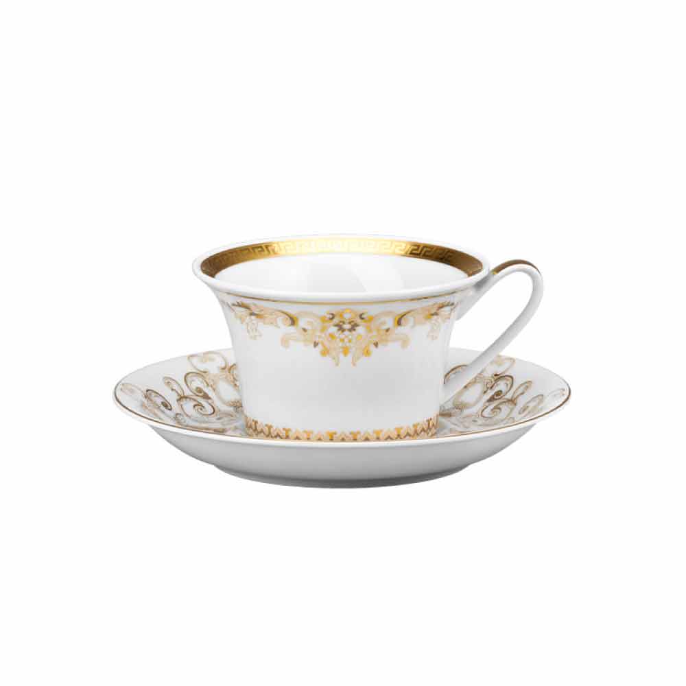 In diesem Set mit 6 Teetassen Die ganze Raffinesse und der Luxus der neuen Geschirrkollektion Medusa Gala sind darin enthalten, die in Design und Dekoration die traditionellen Versace- Motive neu interpretiert: Das Medusa-Symbol wechselt sich mit raffinierten barocken Ornamenten in kostbarem Goldfiligran ab. Ein spannender Kontrasteffekt zwischen dem Weiß des Porzellans und reinem Gold schafft eine perfekte Inszenierung, modern und zugleich einzigartig.