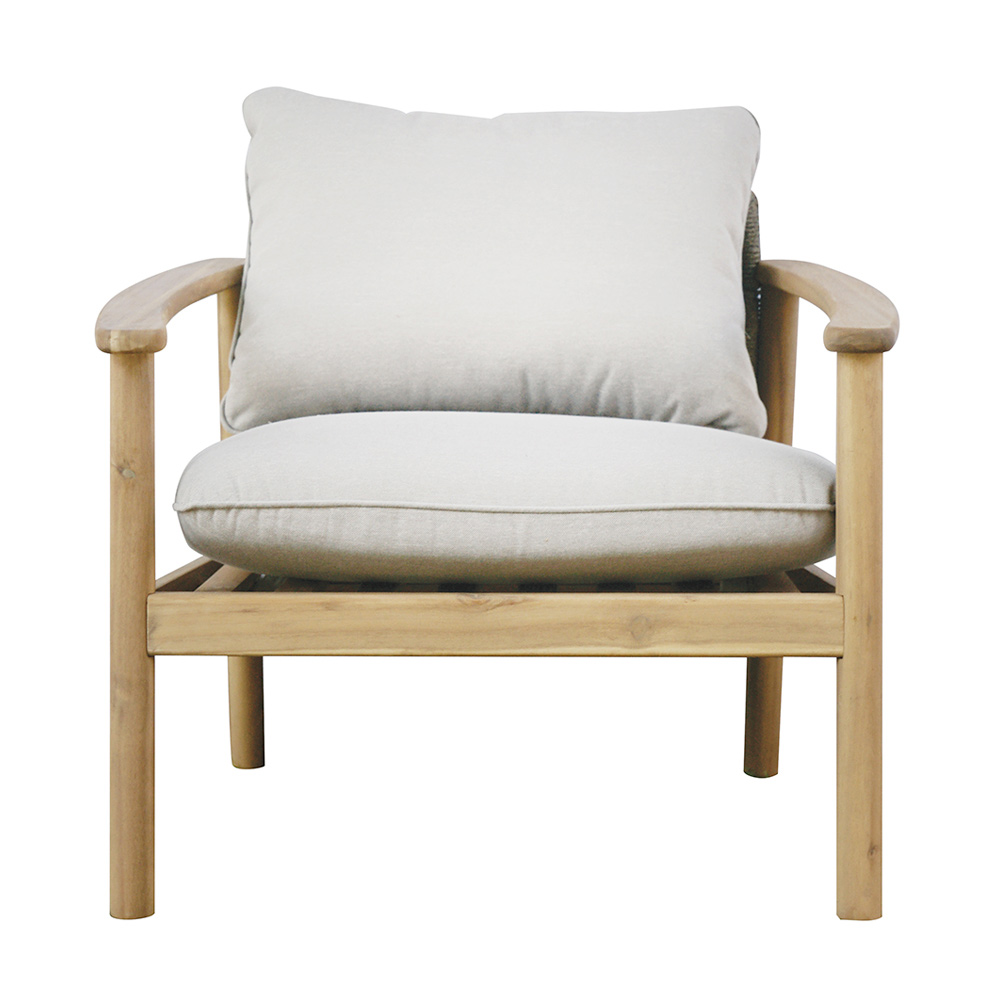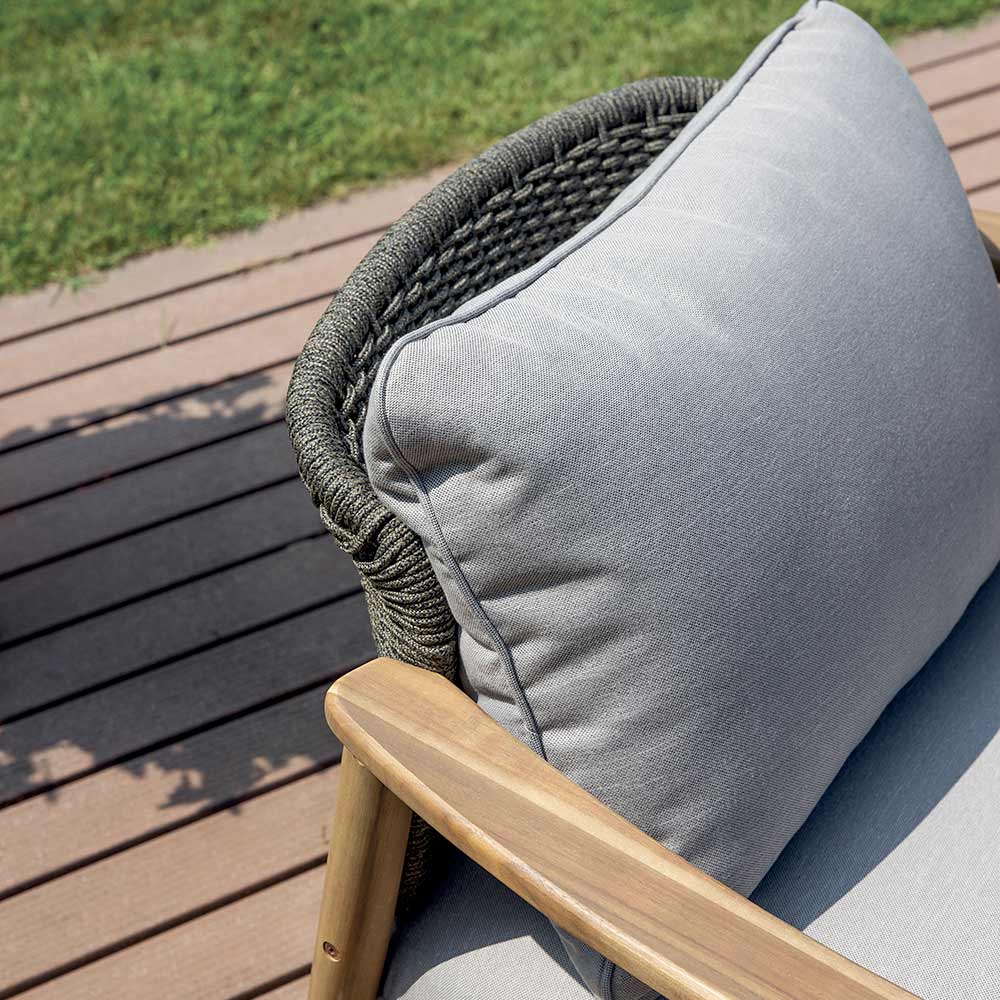 Rosira Gartenlounge-Set aus Akazienholz mit Seil- und grauen Kissen