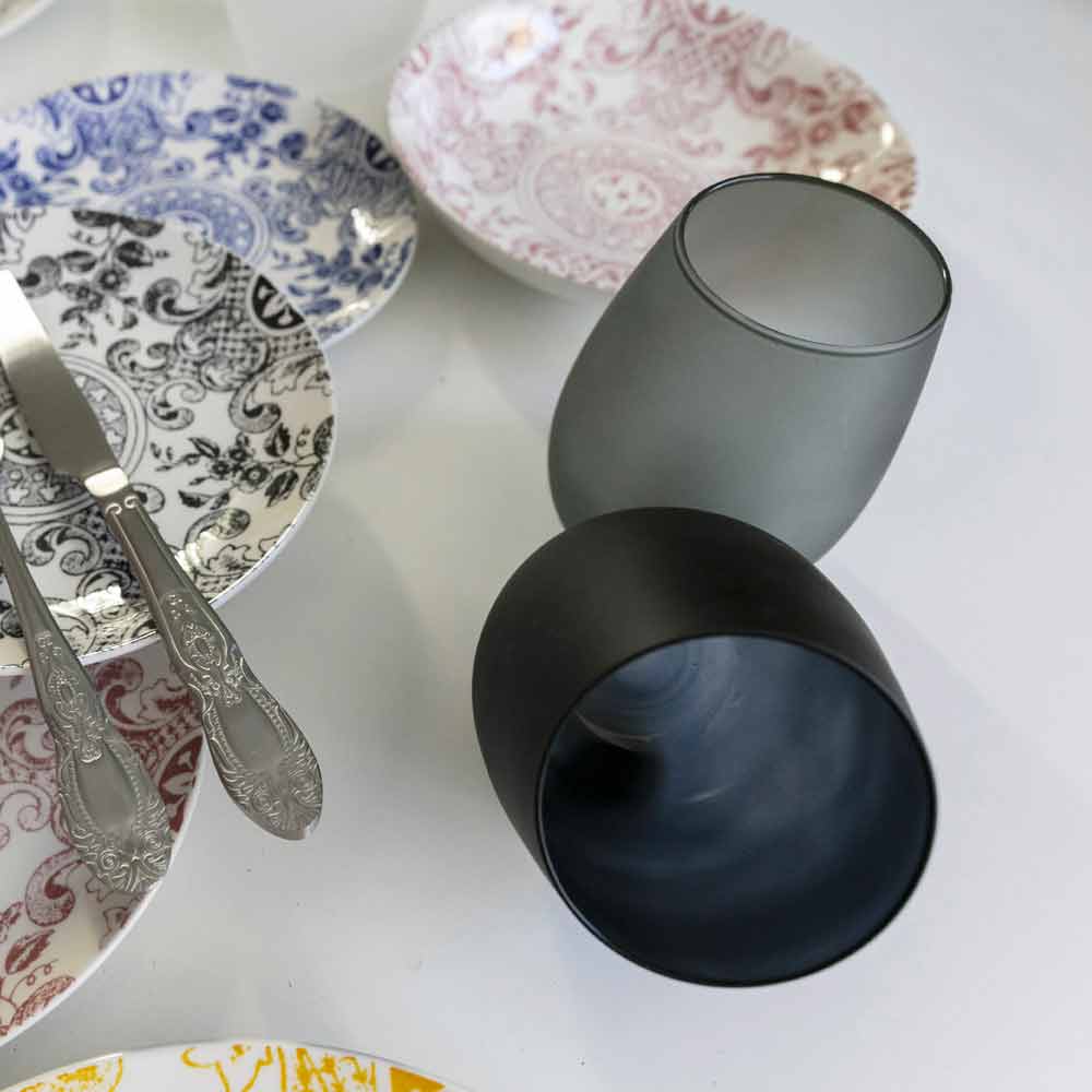 Set Weiß- oder Rotweingläser aus farbigem Glas mit intensiven Farben, 12 Stück.