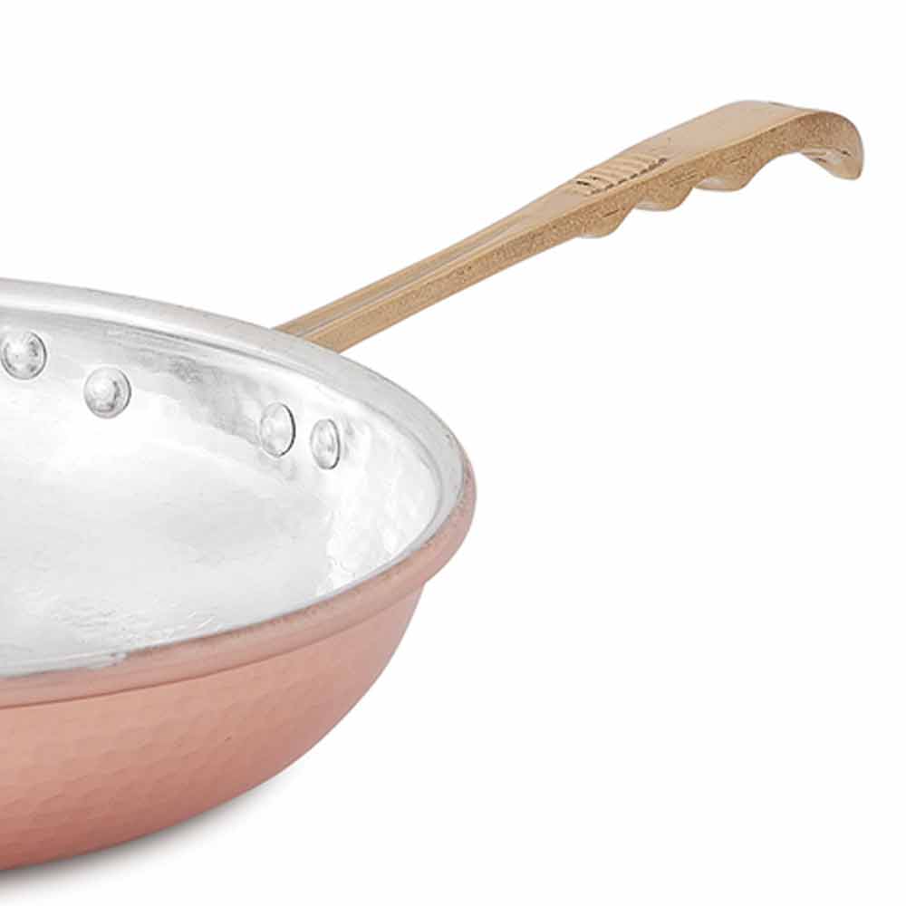 massivem Kupfer, gehämmert und von Hand über dem Feuer verzinnt, ist ideal zum Braten, Pfannkuchen, zum Anbraten von Nudeln oder zum Glasieren von Gemüse.