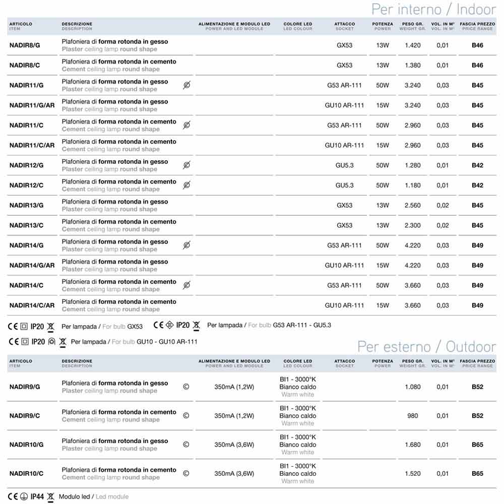 Die Colacem®- Linie umfasst Anhänger, Gartenstangen und eine Reihe von Spots in verschiedenen Formen und Größen. Als Material wird Gips, Beton oder Faserleichtbeton verwendet.