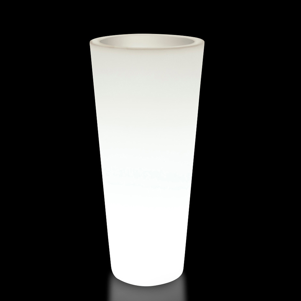 Runde, fluofarbene Gartenvase mit Licht Made in Italy