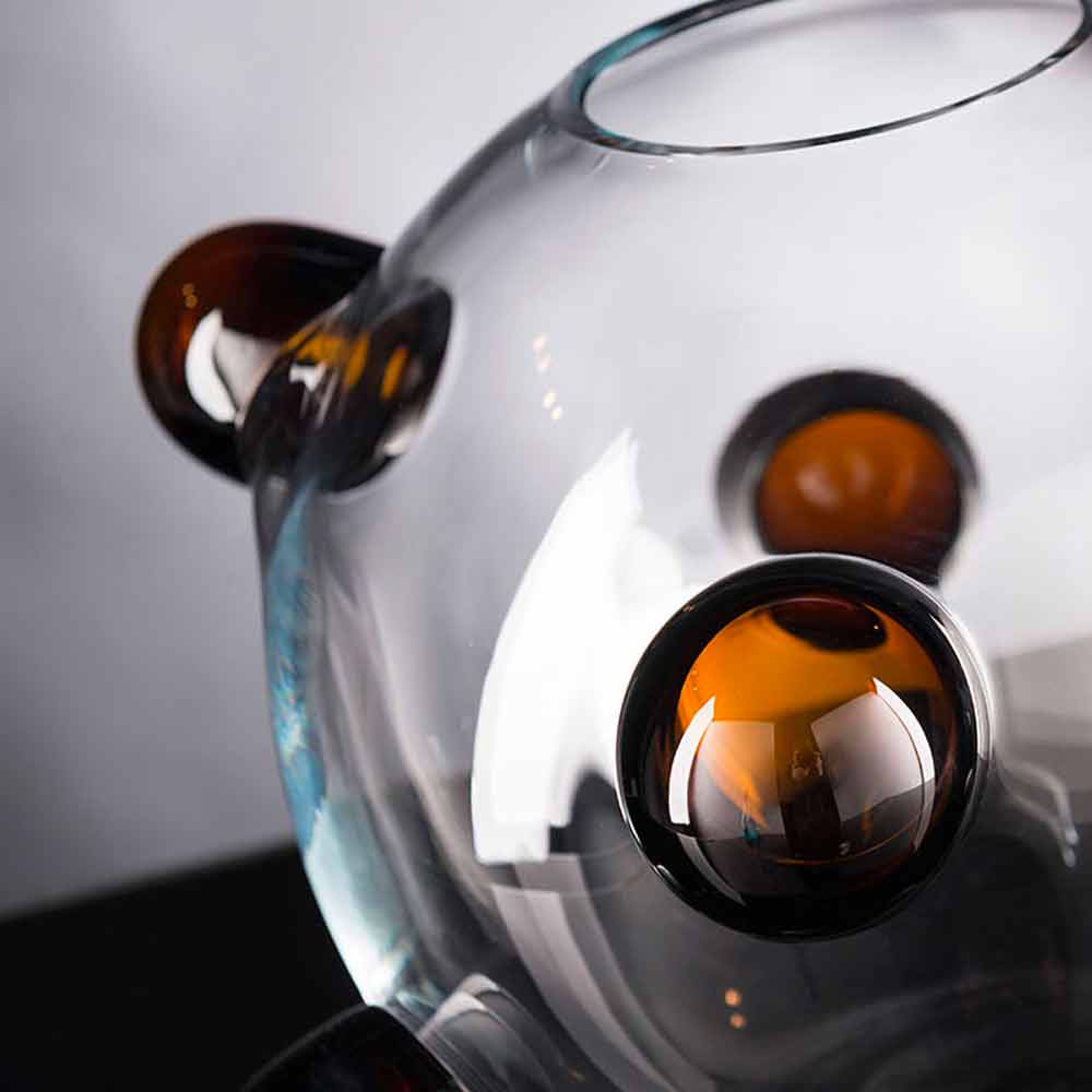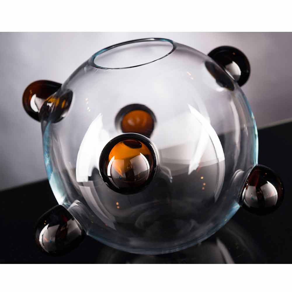Dekorative Vase aus mundgeblasenem Muranoglas mit farbigen Details Made in Italy.