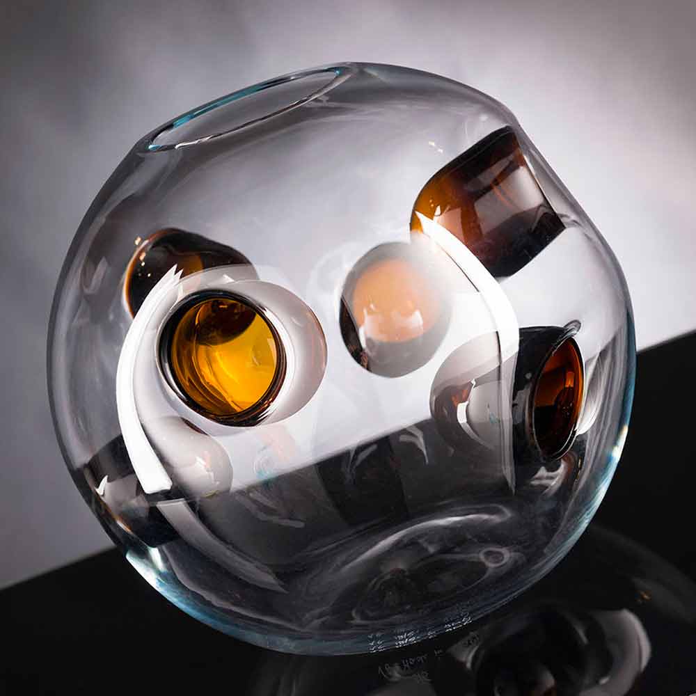 Vase aus mundgeblasenem Muranoglas mit farbigen Details made in Italy.