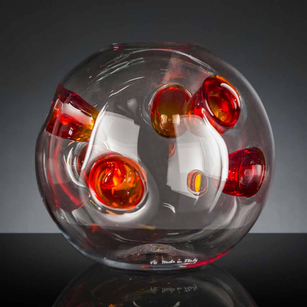transparentem mundgeblasenem Muranoglas mit farbigen Details,