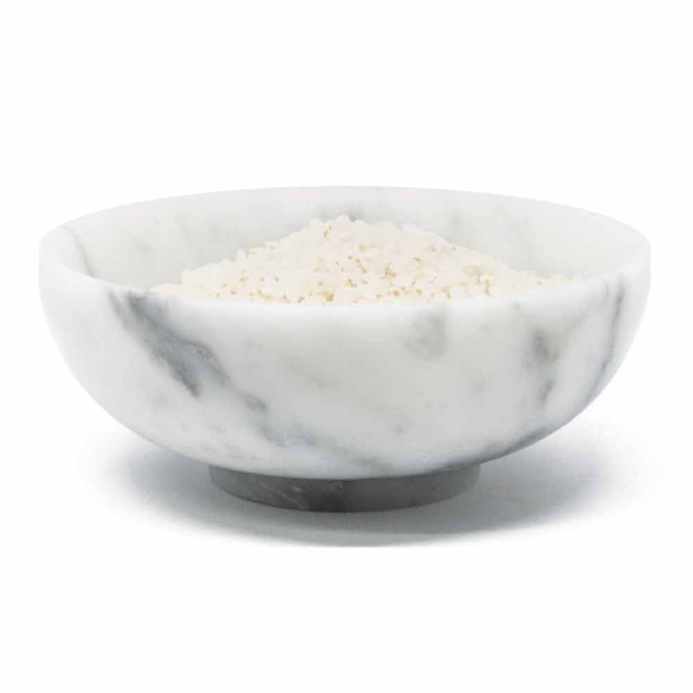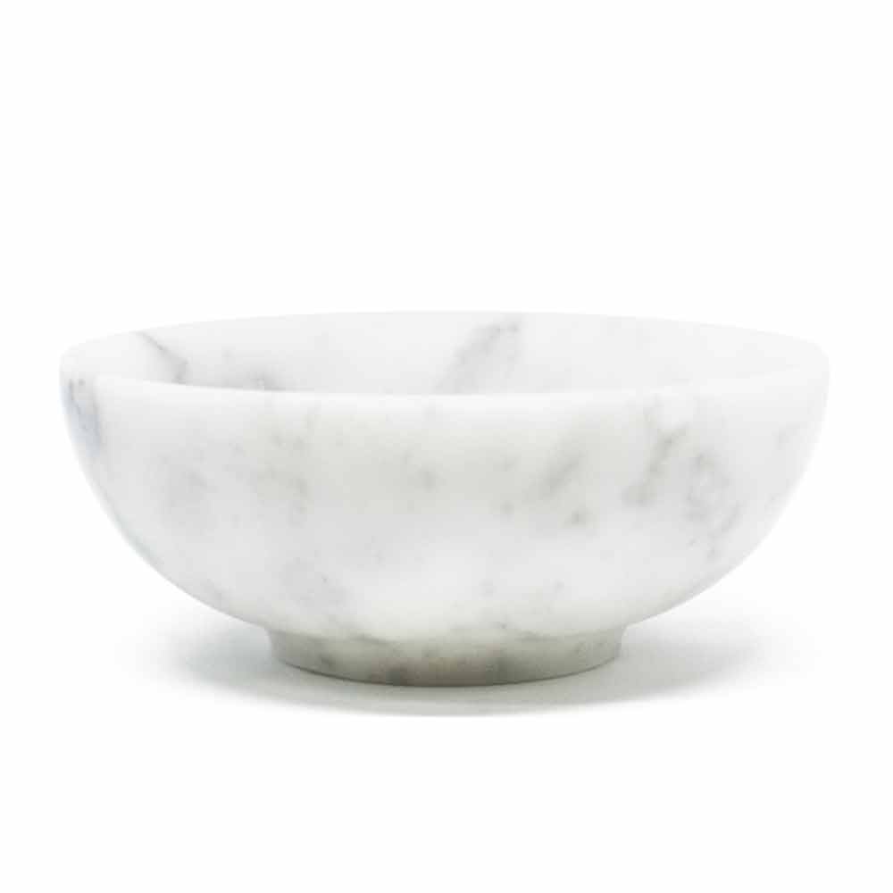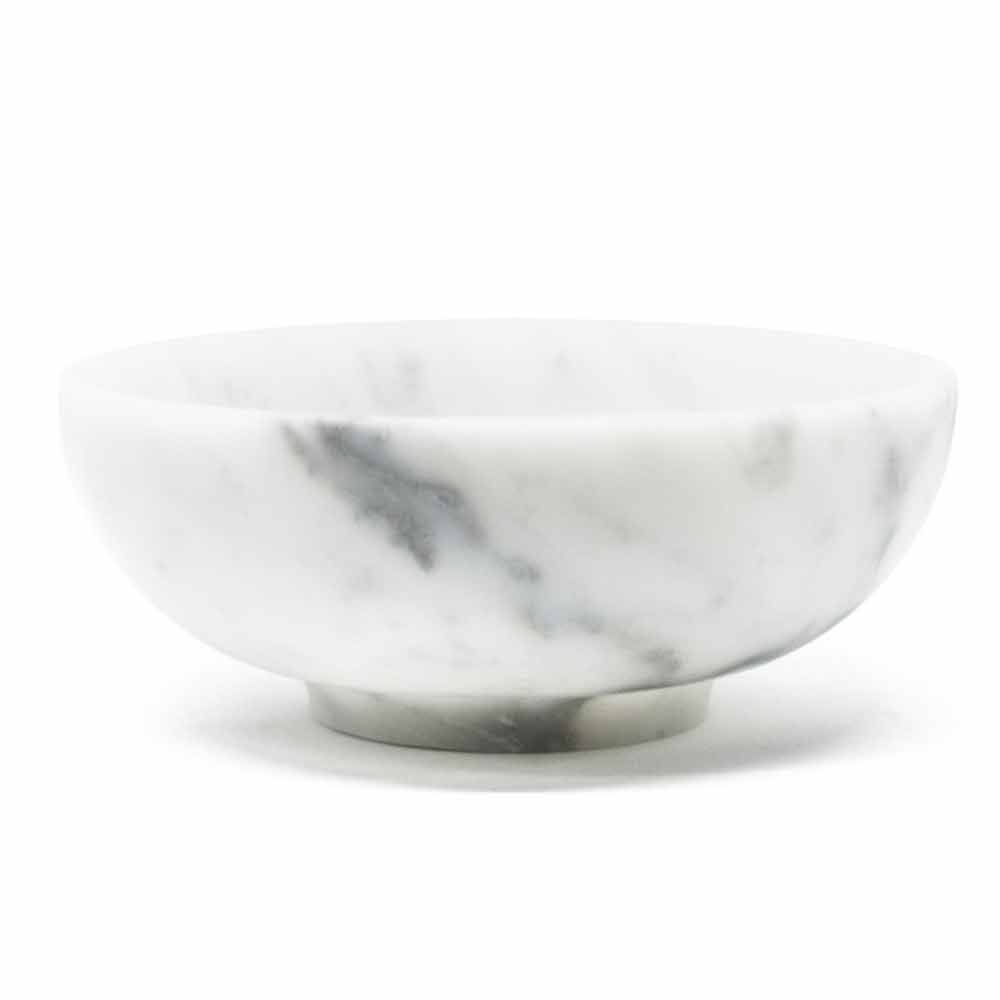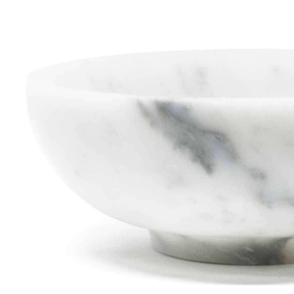 Runde Designschale aus satinweißem Carrara-Marmor Made in Italy.