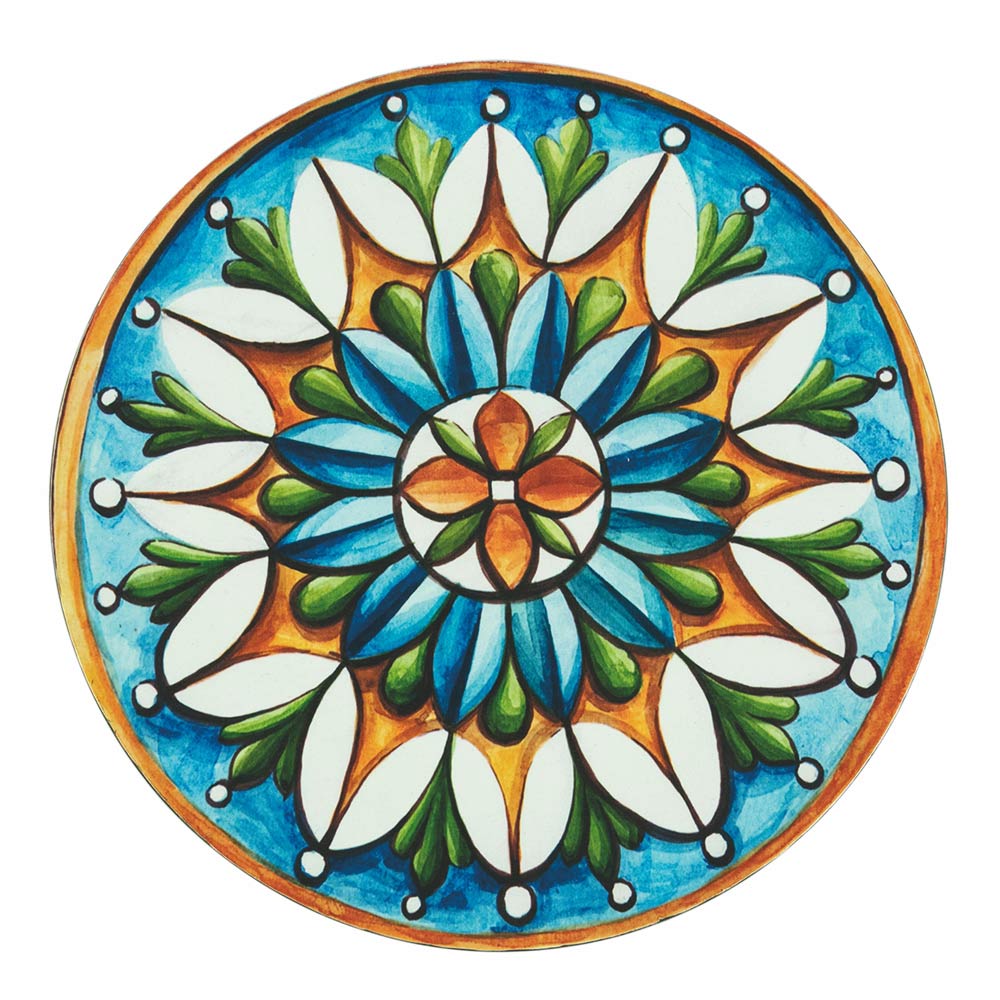 Runde bunte Tischsets aus Kunststoff mit Majolika-Design, 12 Stück.