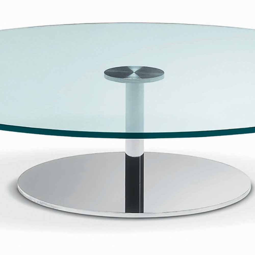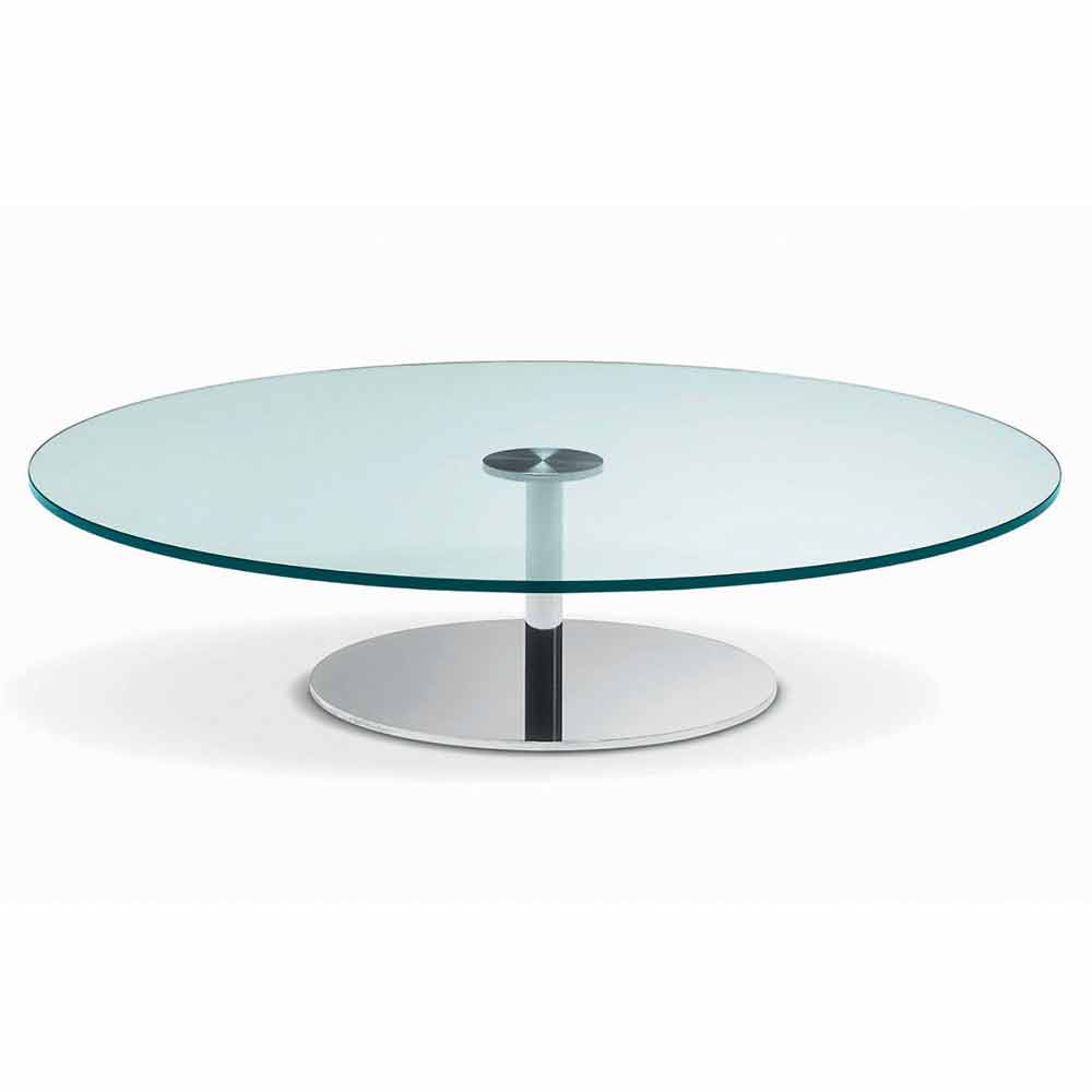 Runder Couchtisch mit extraklarer Glasplatte und verchromtem Untergestell, made in Italy Design.