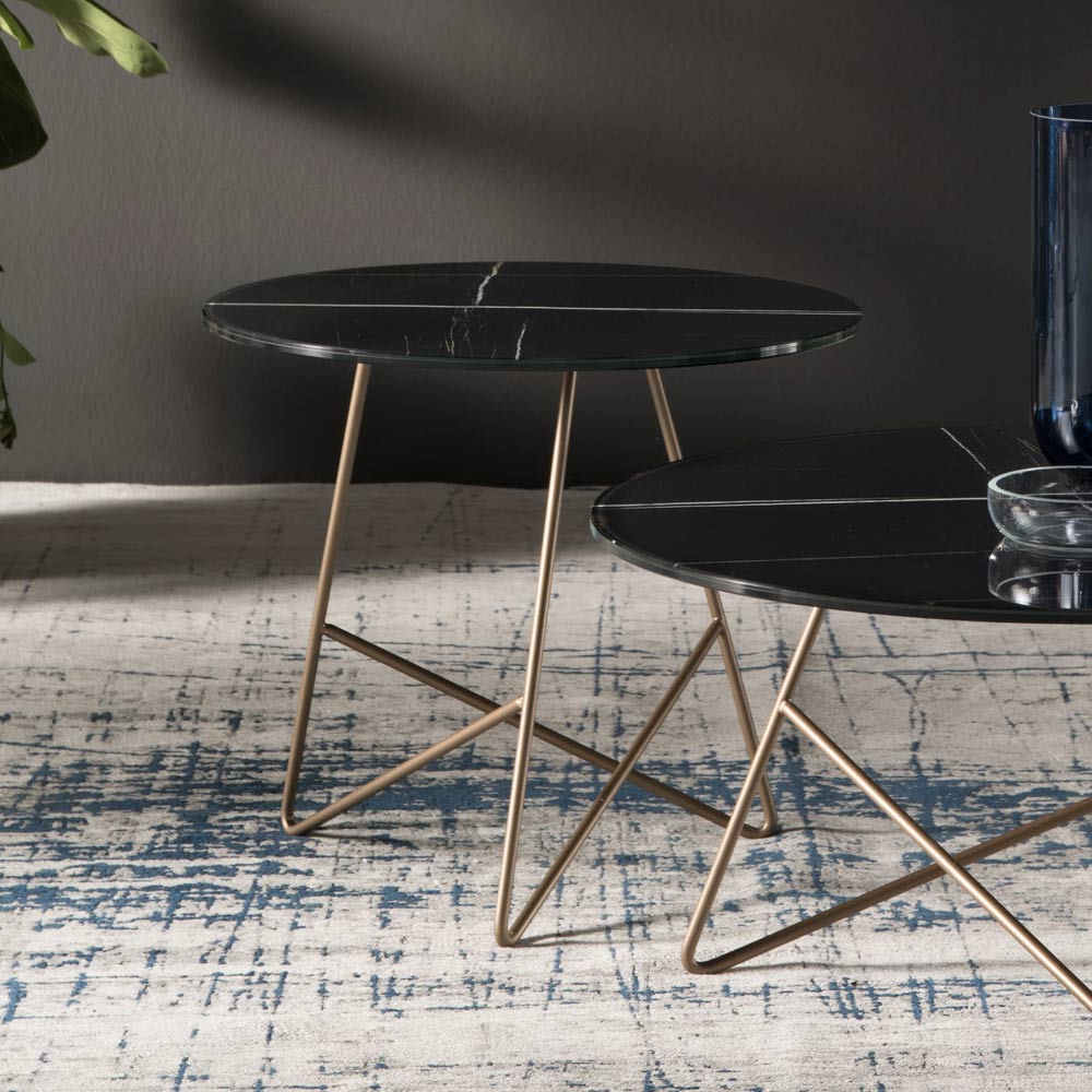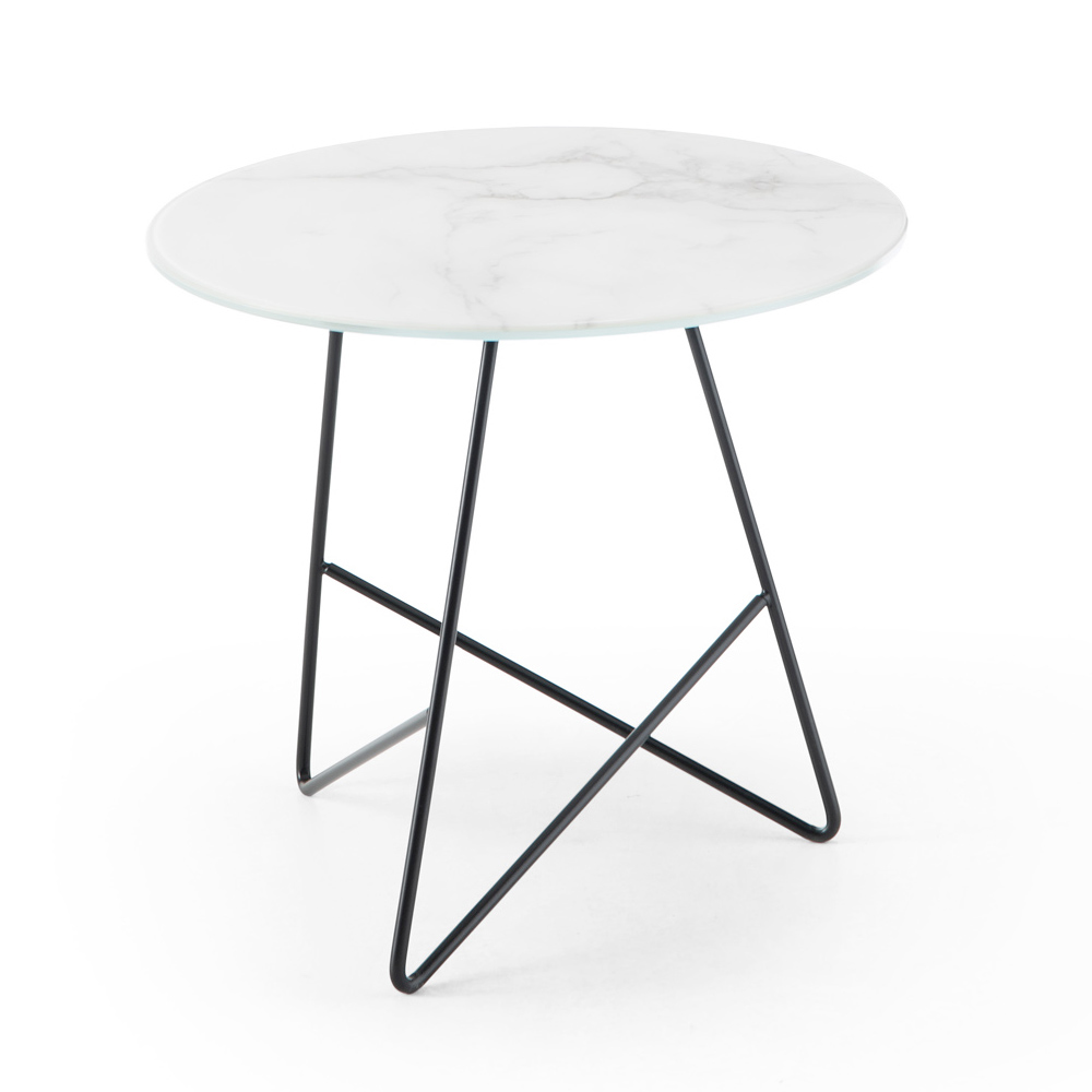 Runder Couchtisch aus Glas mit Metall- und Luxusmarmoreffekt - Magali
