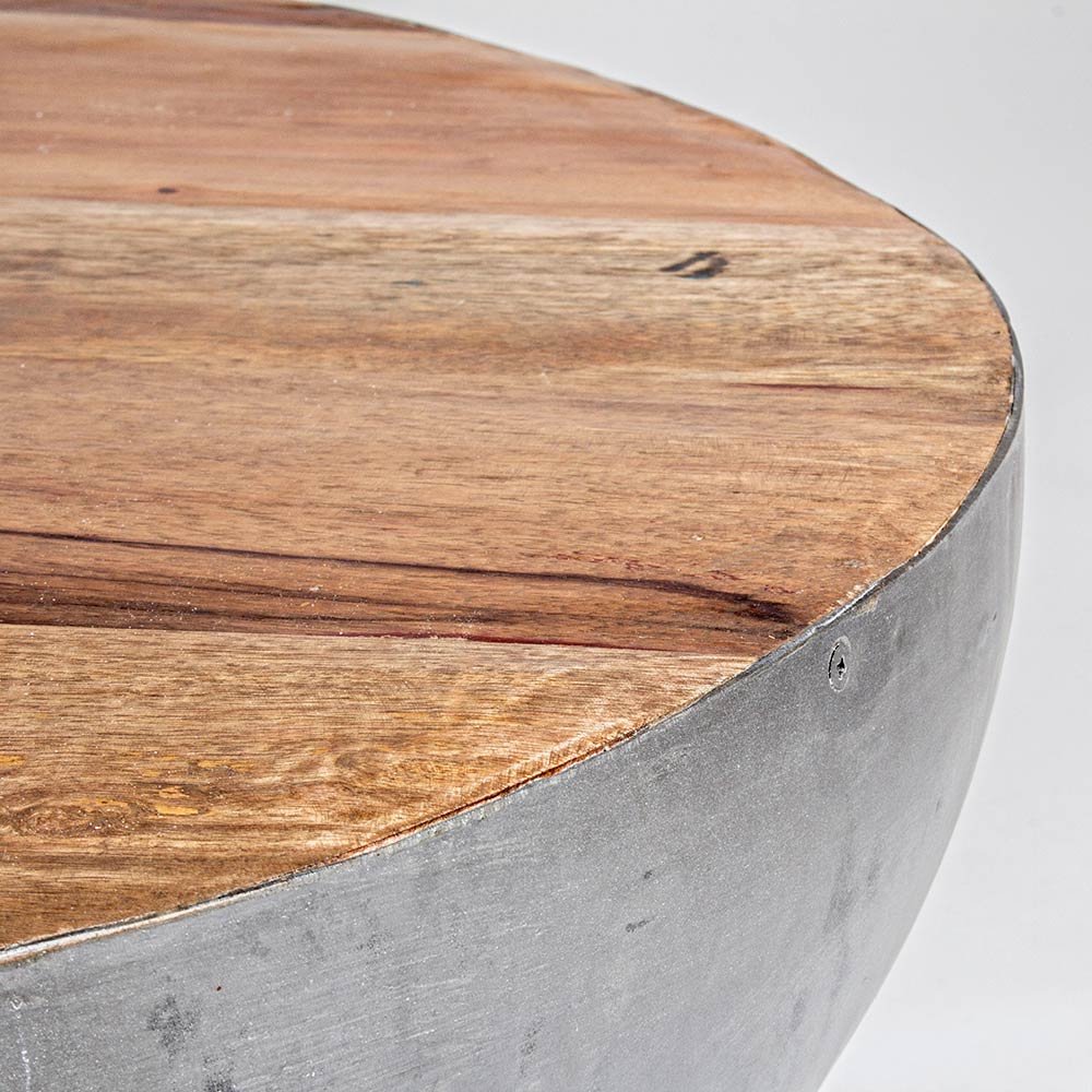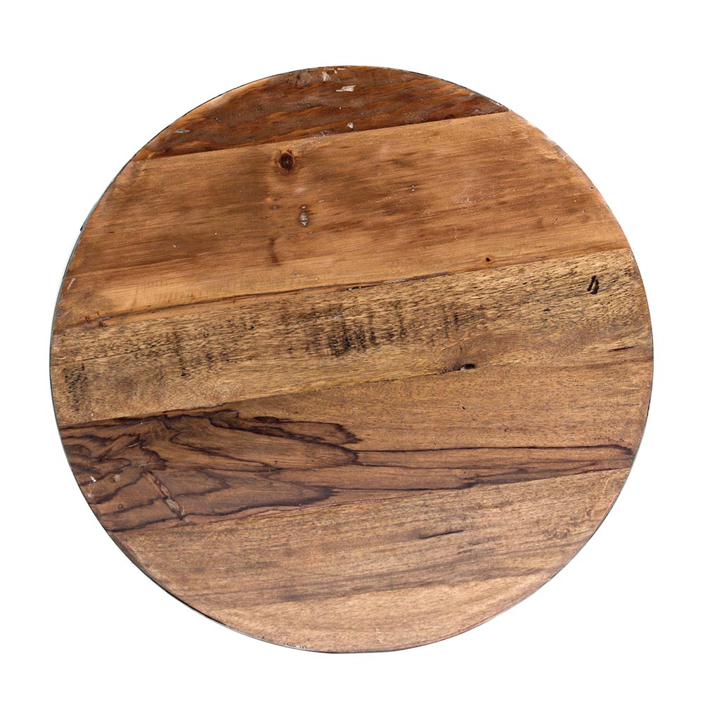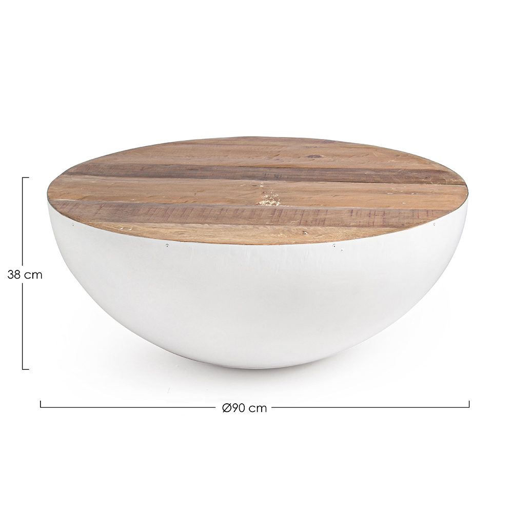 Runder Couchtisch aus recyceltem Holz und Stahl, 2 Farben und 2 Größen.