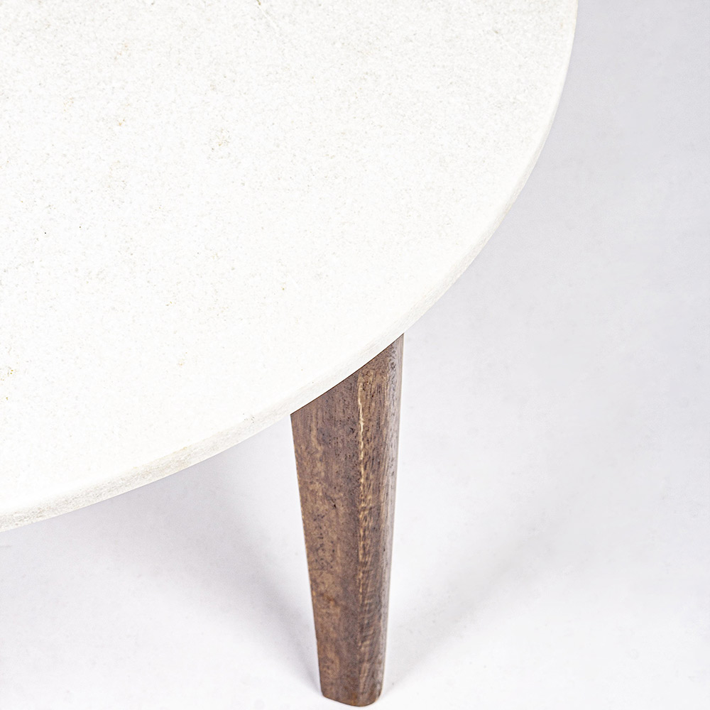 Runder Couchtisch für Wohnzimmer aus Marmor und Mangoholz - Desiderio