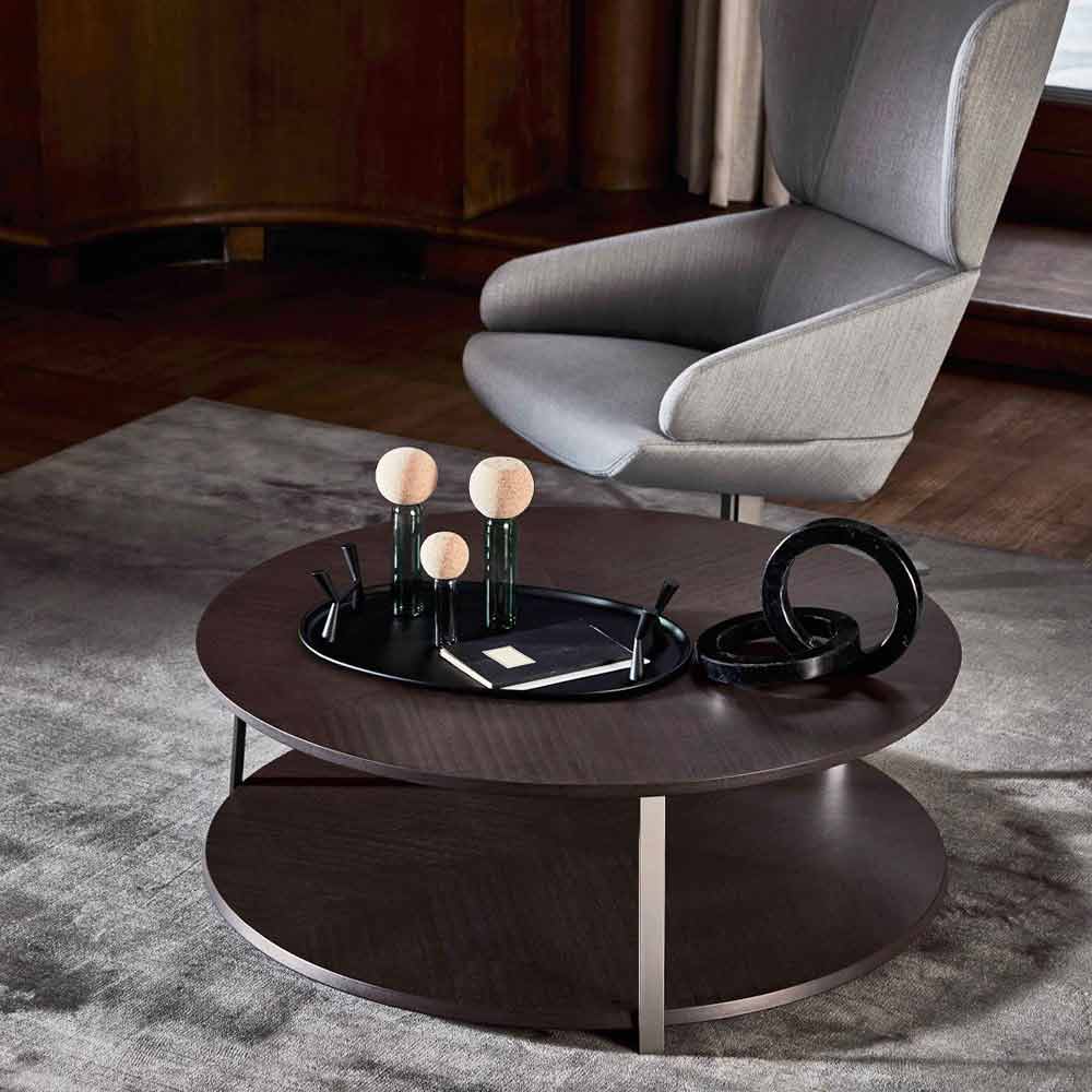 Runder Couchtisch in MDF mit Metallstruktur Made in Italy, Luxus.