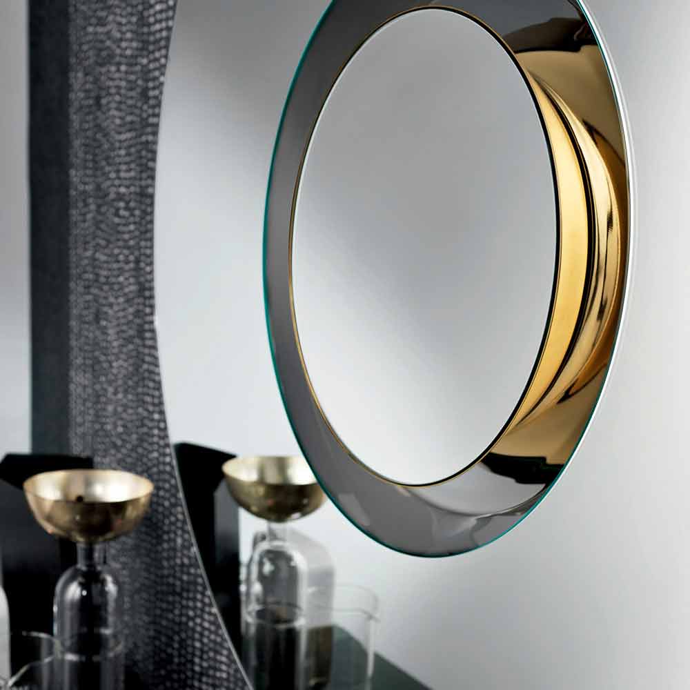 Runder Design-Wandspiegel aus goldenem Metall, Luxus Made in Italy - Merale