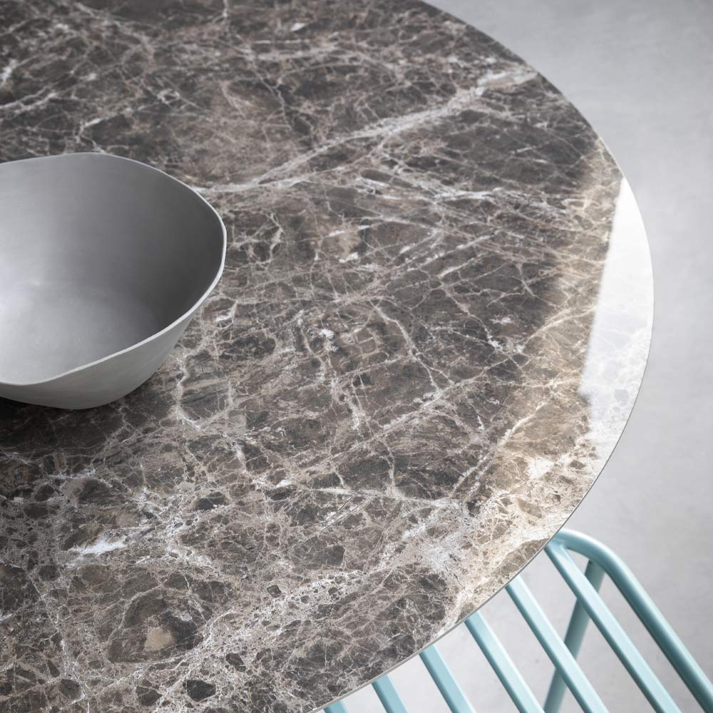 Runder Esstisch aus Glaskeramik und Metall Made in Italy.