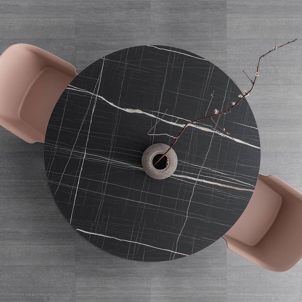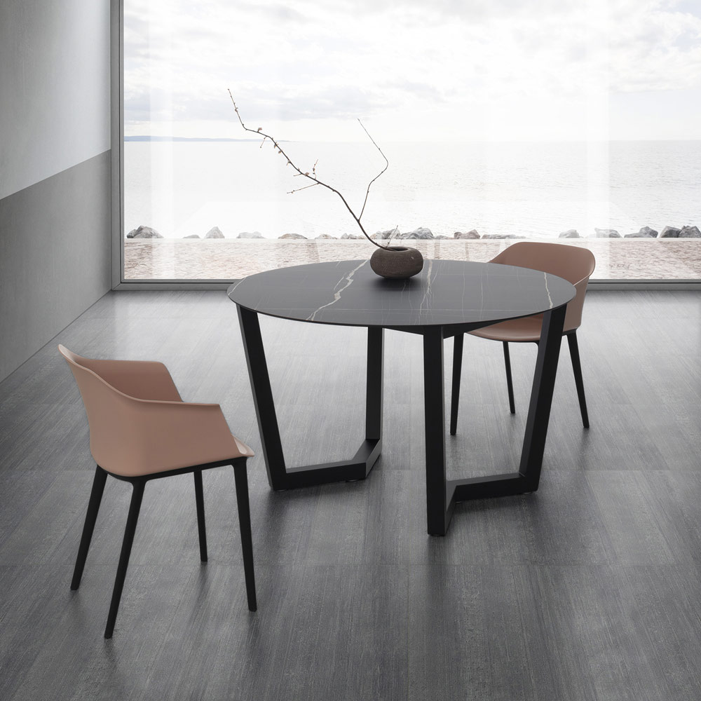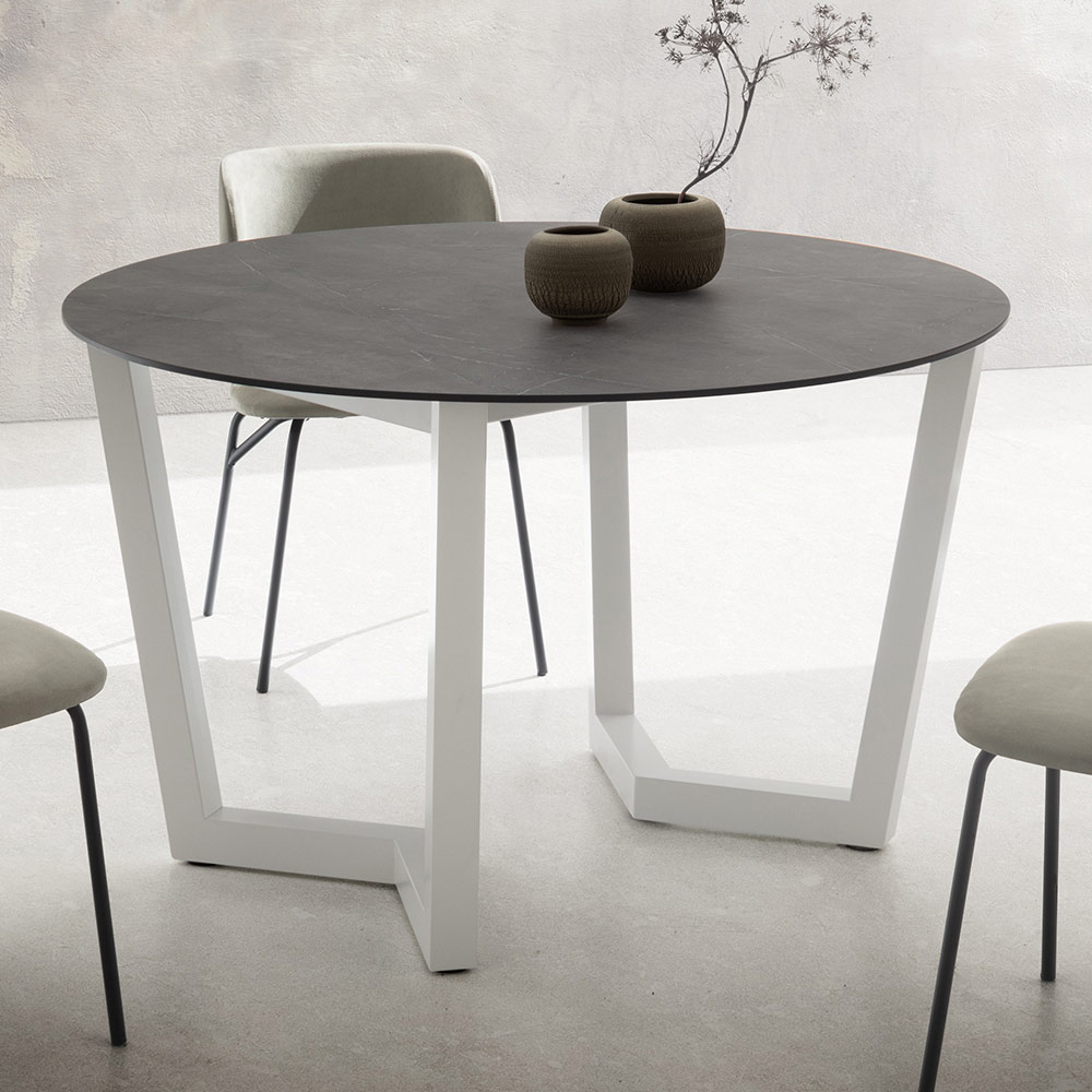 Runder Küchentisch mit geschichteter HPL-Platte Made in Italy.