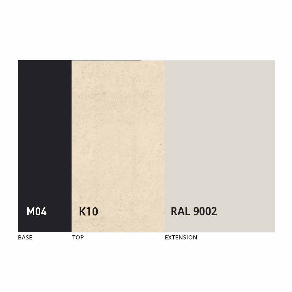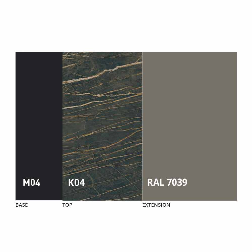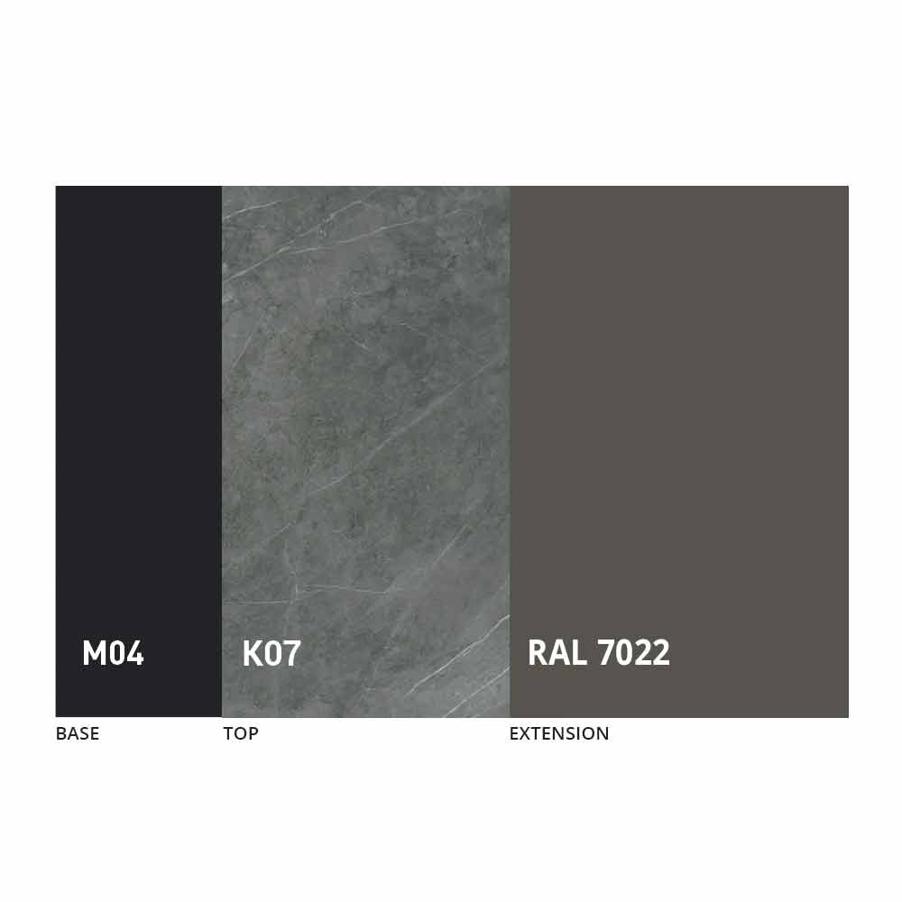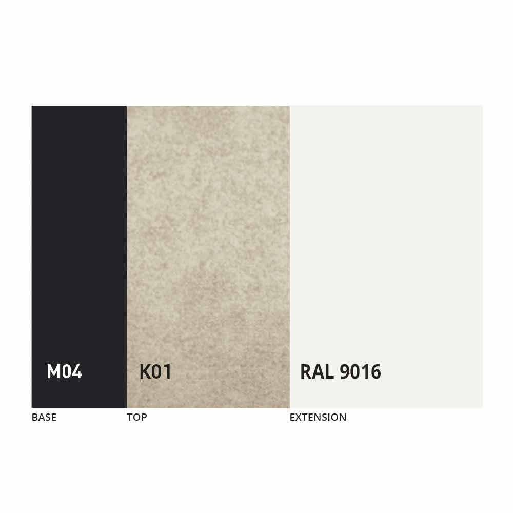 Die Platte und das Untergestell des Tisches können mit verschiedenen Materialien und Musteroberflächen oder RAL-Lackierungen individuell gestaltet werden. Für Informationen kontaktieren Sie uns bitte über das entsprechende Formular " Informationen anfordern" .