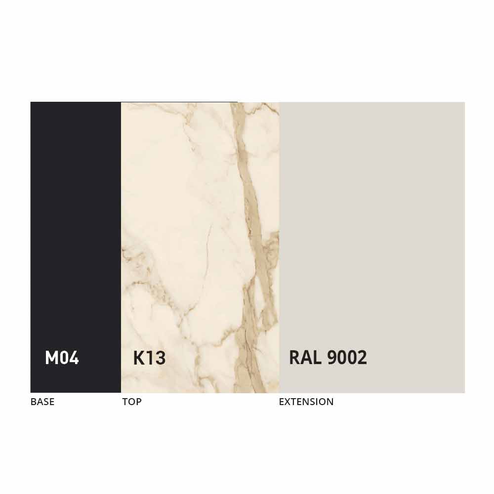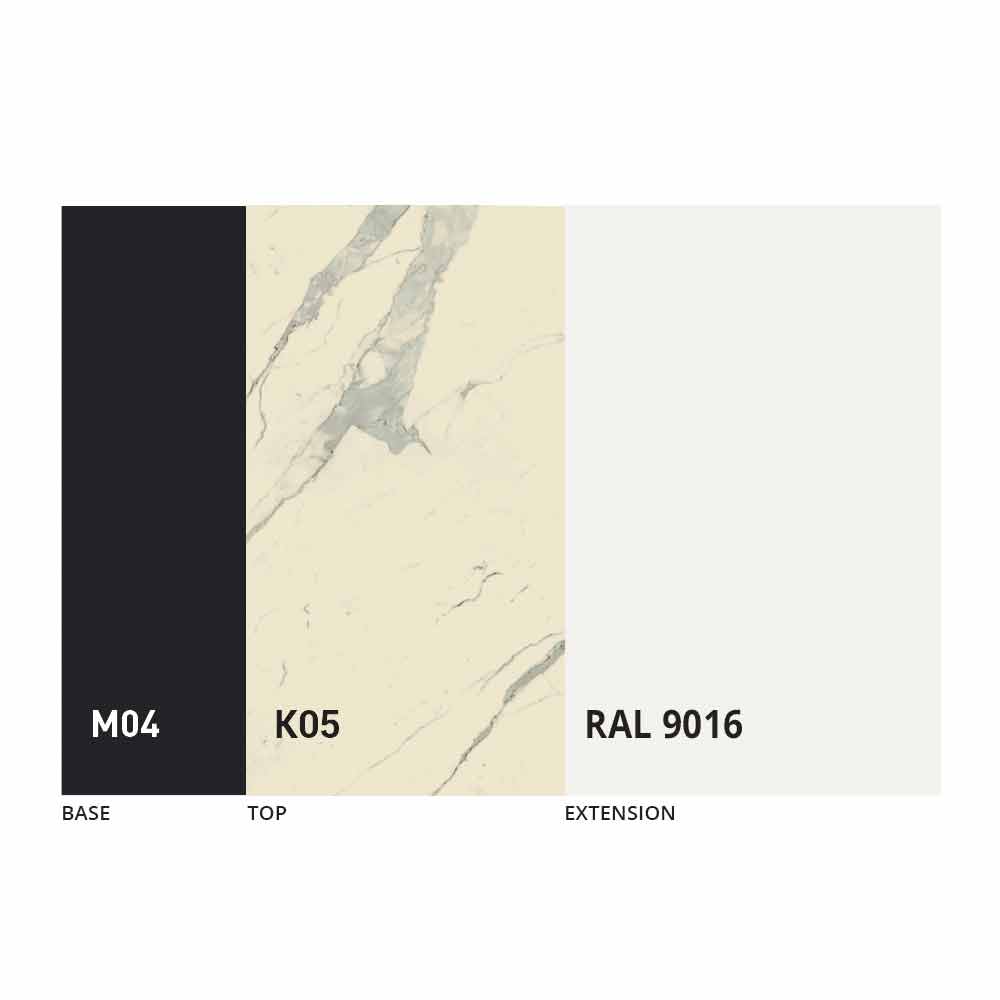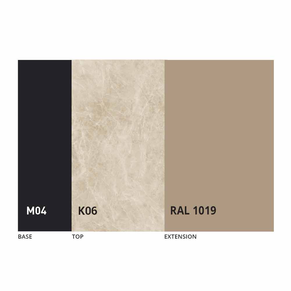 Der Wert des Produkts wird durch die Handwerkskunst in Italien mit Materialien von ausgezeichneter Qualität und 100% Made in Italy erreicht, bei der Keramik für die Oberseite und mattschwarz lackiertes Metall für die Basis verwendet werden.
