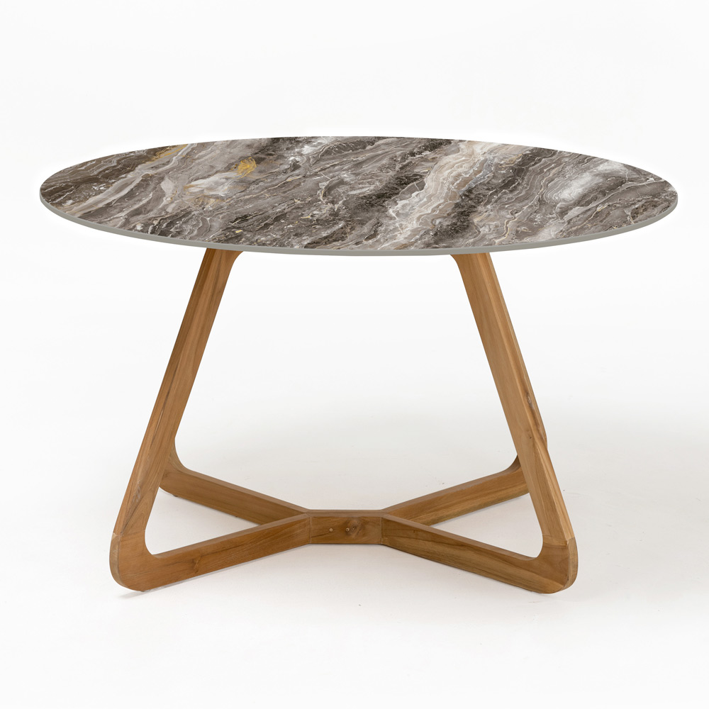 Runder Gartentisch aus Holz und Keramik, Made in Italy