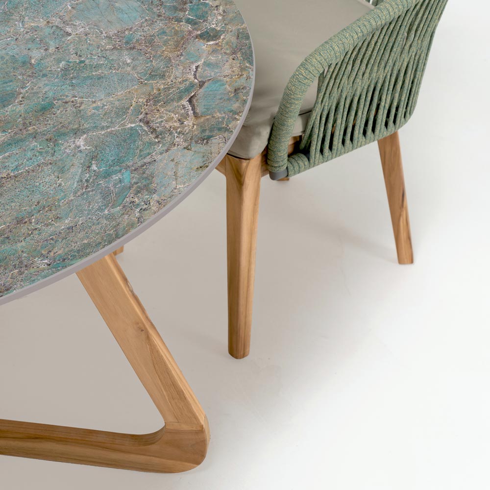 Runder Gartentisch aus Holz und Keramik, Made in Italy