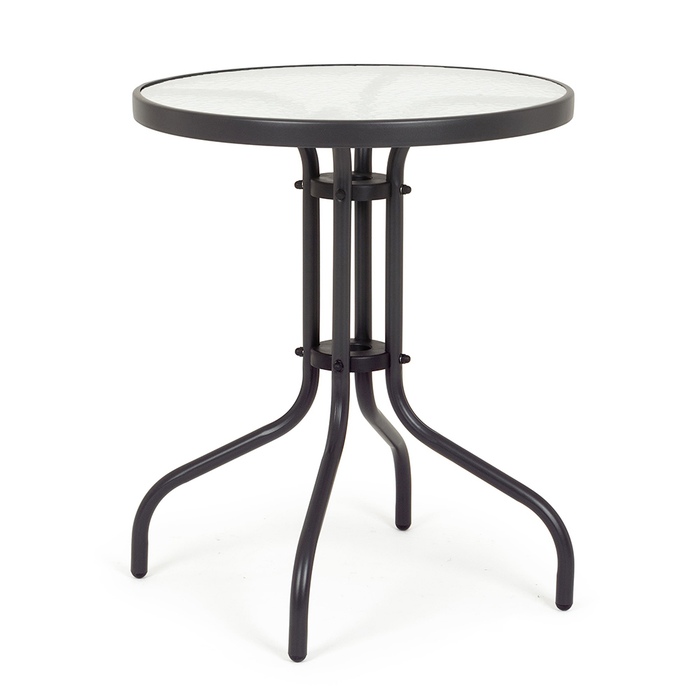 Runder Stahl-Außentisch mit Glasplatte, Gartenartikel.