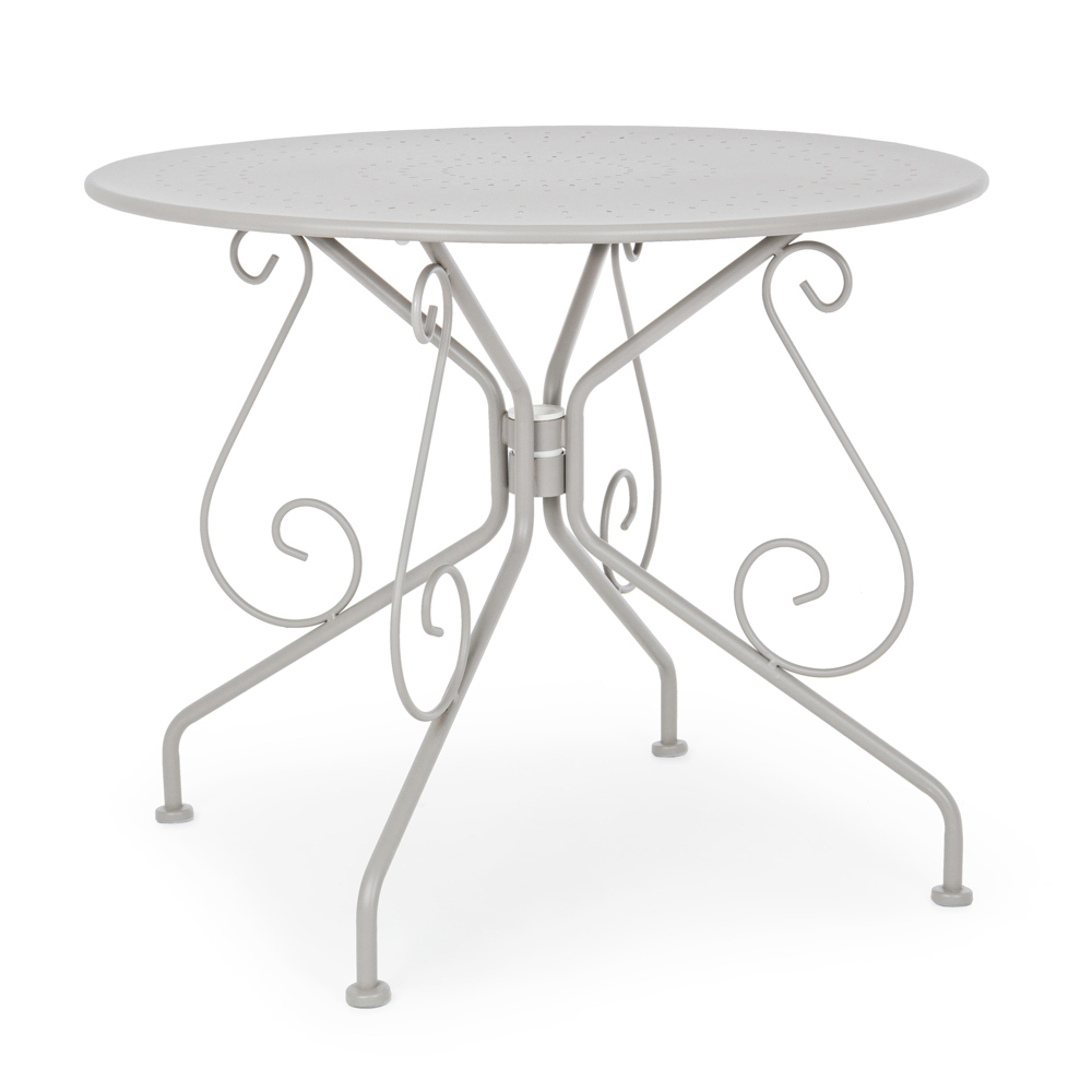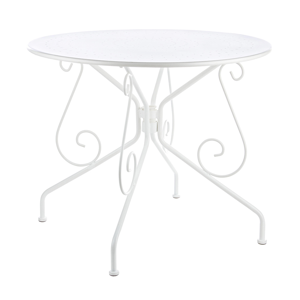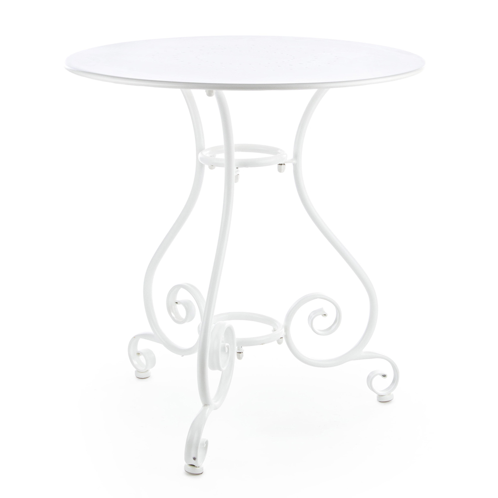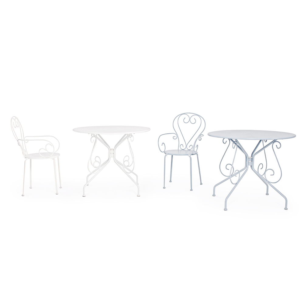 Runder Tisch für den Shabby Chich-Stil im Freien aus lackiertem Stahl, erhältlich in zwei verschiedenen Größen.
